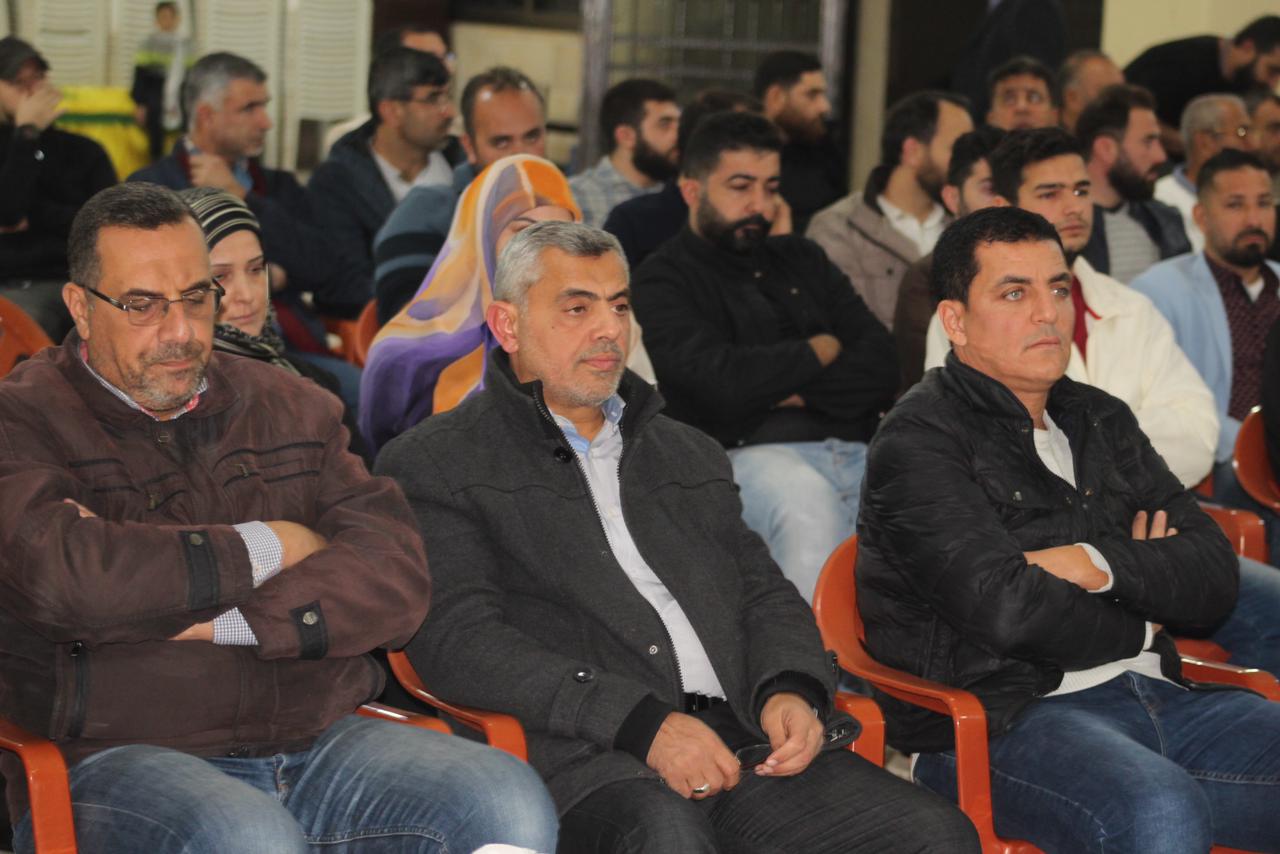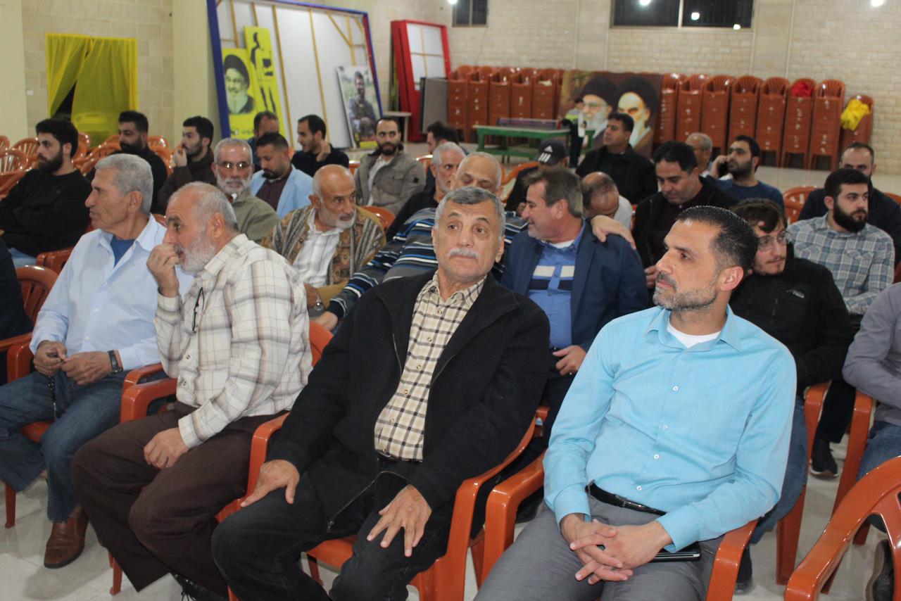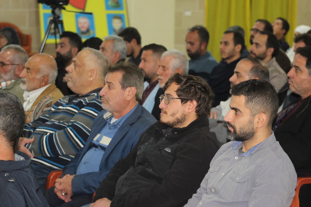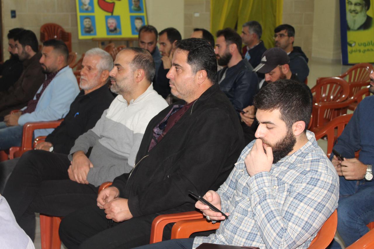 وعلى وقع النشيد الوطني اللبناني ونشيد حزب الله، افتتح اللقاء، وبعدها آيات بينات من الذكر الحكيم رتلها القارئ الحاج حسين حرقوص وعرف اللقاء الاستاذ عصام خروبي، القى خلالها الدكتور حسام مطر محاضرة تناول فيها الاوضاع اسياسية في المنطقة، وتداعيات الحرب، وتخلل اللقاء، مداخلات من الحاضرين