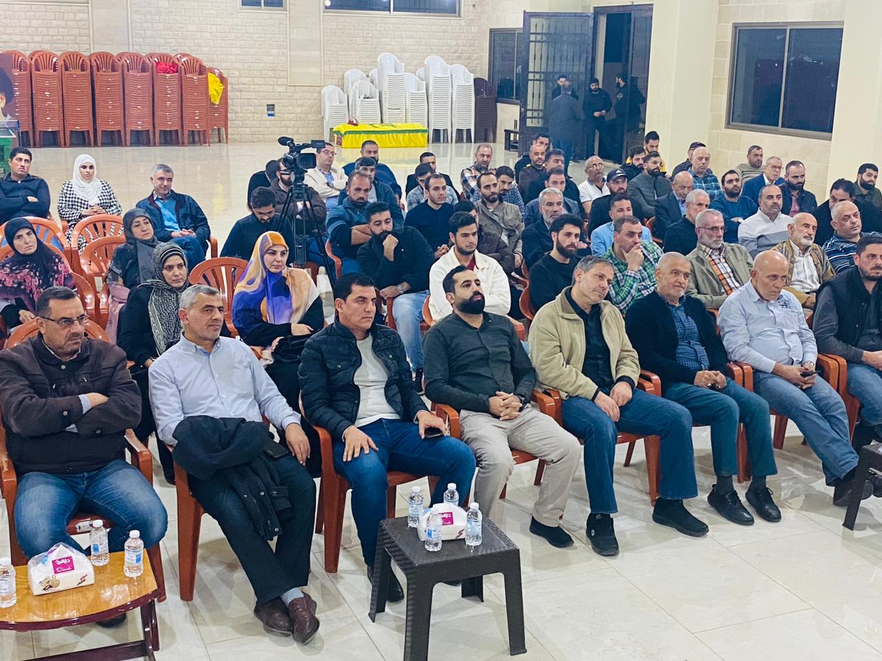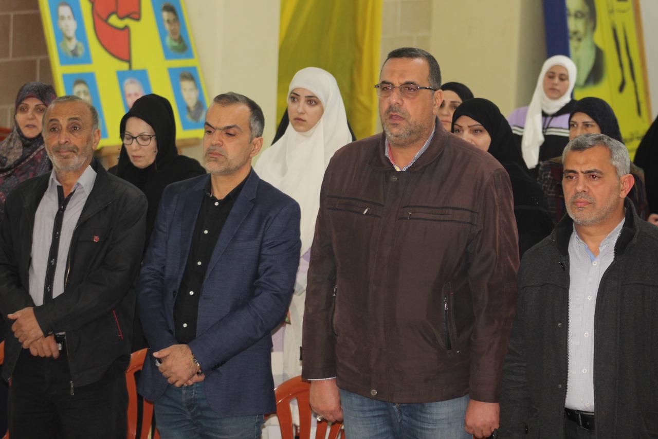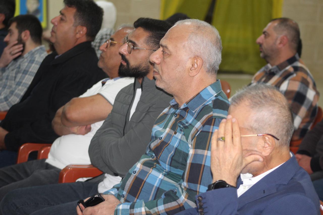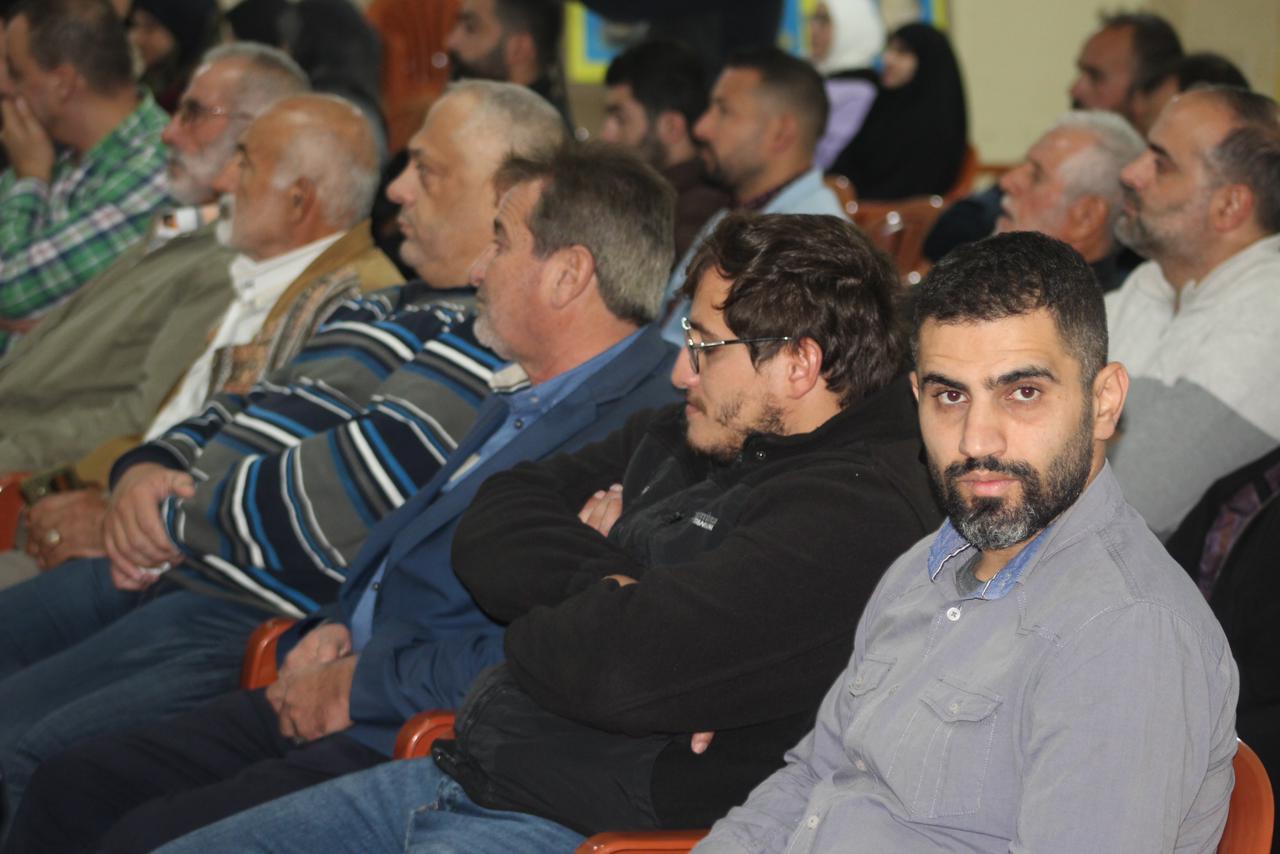 وعلى وقع النشيد الوطني اللبناني ونشيد حزب الله، افتتح اللقاء، وبعدها آيات بينات من الذكر الحكيم رتلها القارئ الحاج حسين حرقوص وعرف اللقاء الاستاذ عصام خروبي، القى خلالها الدكتور حسام مطر محاضرة تناول فيها الاوضاع اسياسية في المنطقة، وتداعيات الحرب، وتخلل اللقاء، مداخلات من الحاضرين