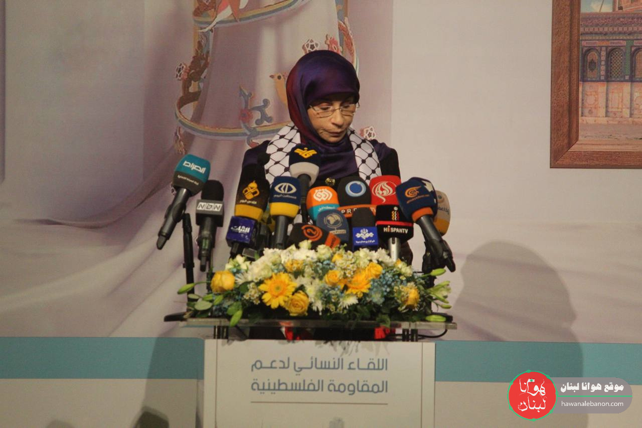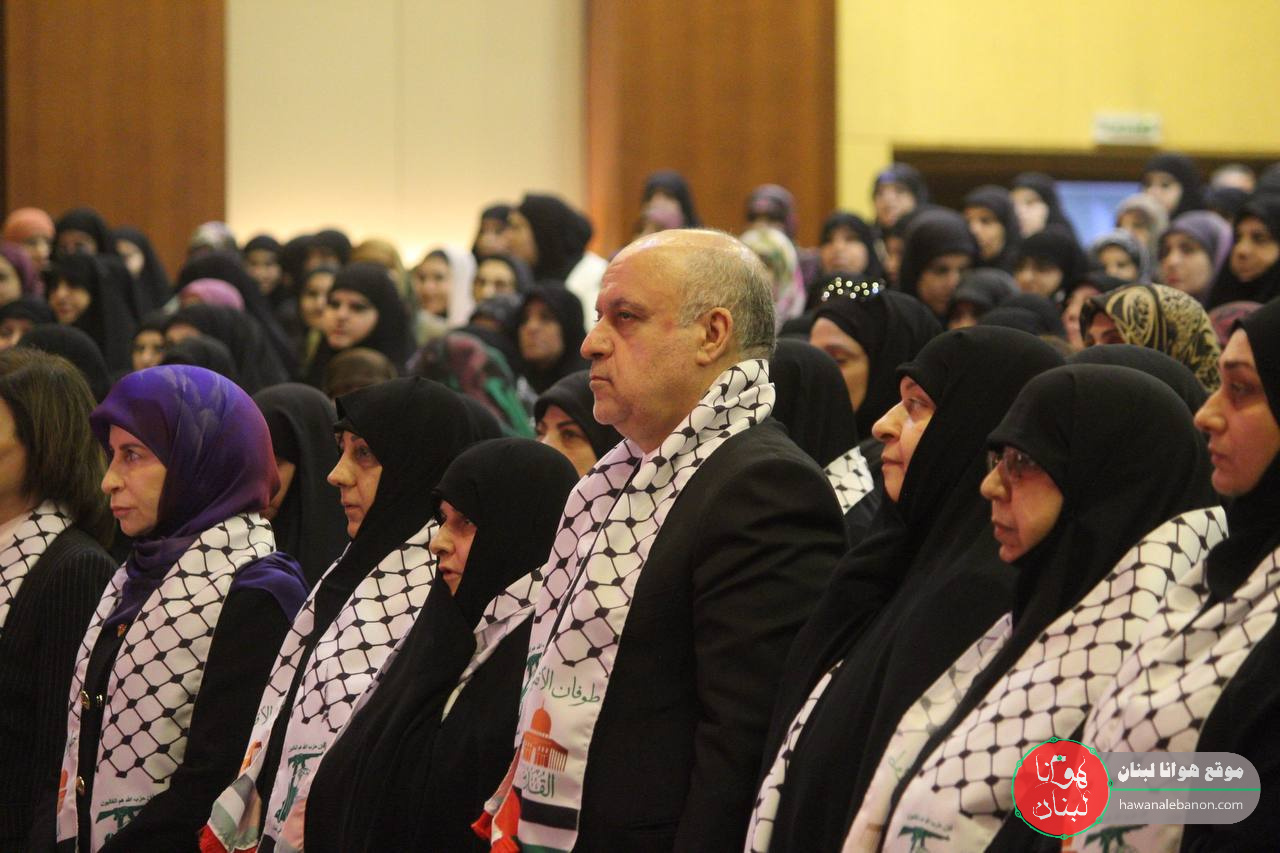 - المشاركة في اللقاء النسائي لدعم المقاومة الفلسطينية في قاعة رسالات.