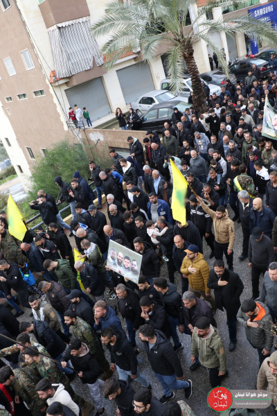 موكب التشييع انطلق من أمام مسجد الامام المهدي في البلدة وجاب الشوارع على وقع الهتافات المؤيدة للمقاومة وسط مشاركة حاشدة من الأهالي الى جانب الفعاليات والشخصيات وعضو كتلة الوفاء للمقاومة النائب حسين جشي والأهالي.