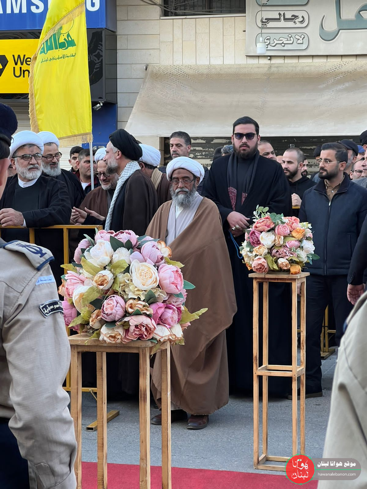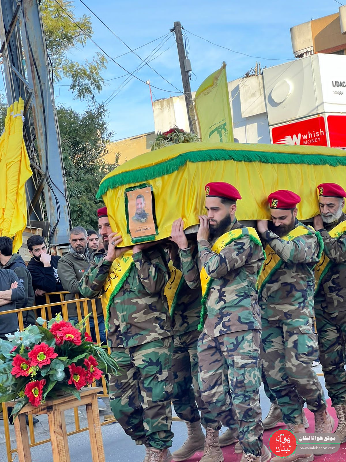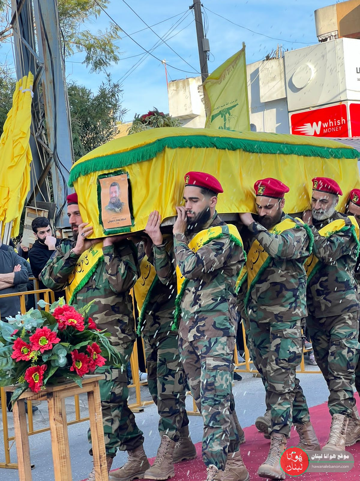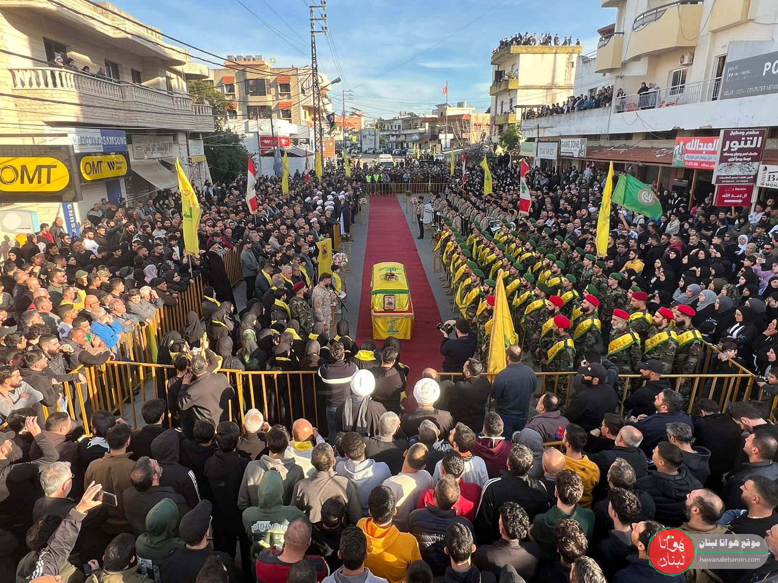 من مدخل البلدة انطلقت المراسم التكريمية حيث سُجِّيَ النعش على منصة خاصة وعزفت الفرقة الموسيقية في كشافة الامام المهدي لحن الشهادة ثم قدمت ثلة من المجاهدين قسم العهد والولاء بالمضيّ على خطى المقاومة والشهداء.