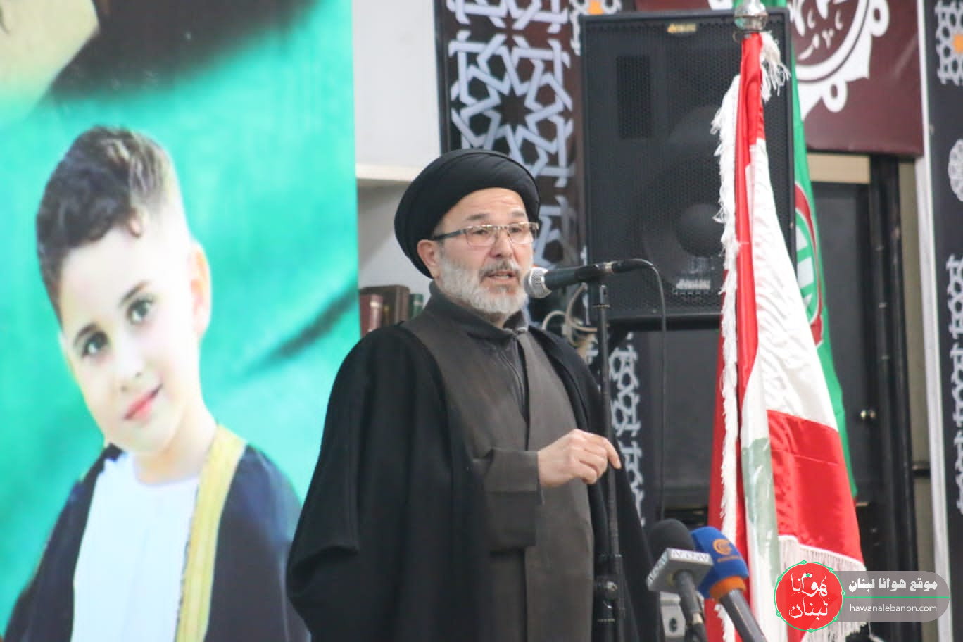 حفل التأبين الذي اقيم في حسينية البلدة والذي استهل بأيات من الذكر الحكيم وكلمة لأل الشهداء القاها امام البلدة سماحة السيد محمود برجاوي ثم كانت كلمة حركة امل القاها مدير مكتب الرئيس نبيه بري النائب هاني قبيسي مستهلا كلمته بتقديم واجب العزاء بإسم دولة الرئيس نبيه بري وبإسم قيادة حركة امل.