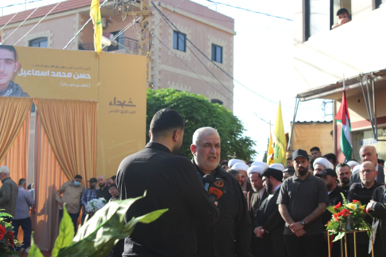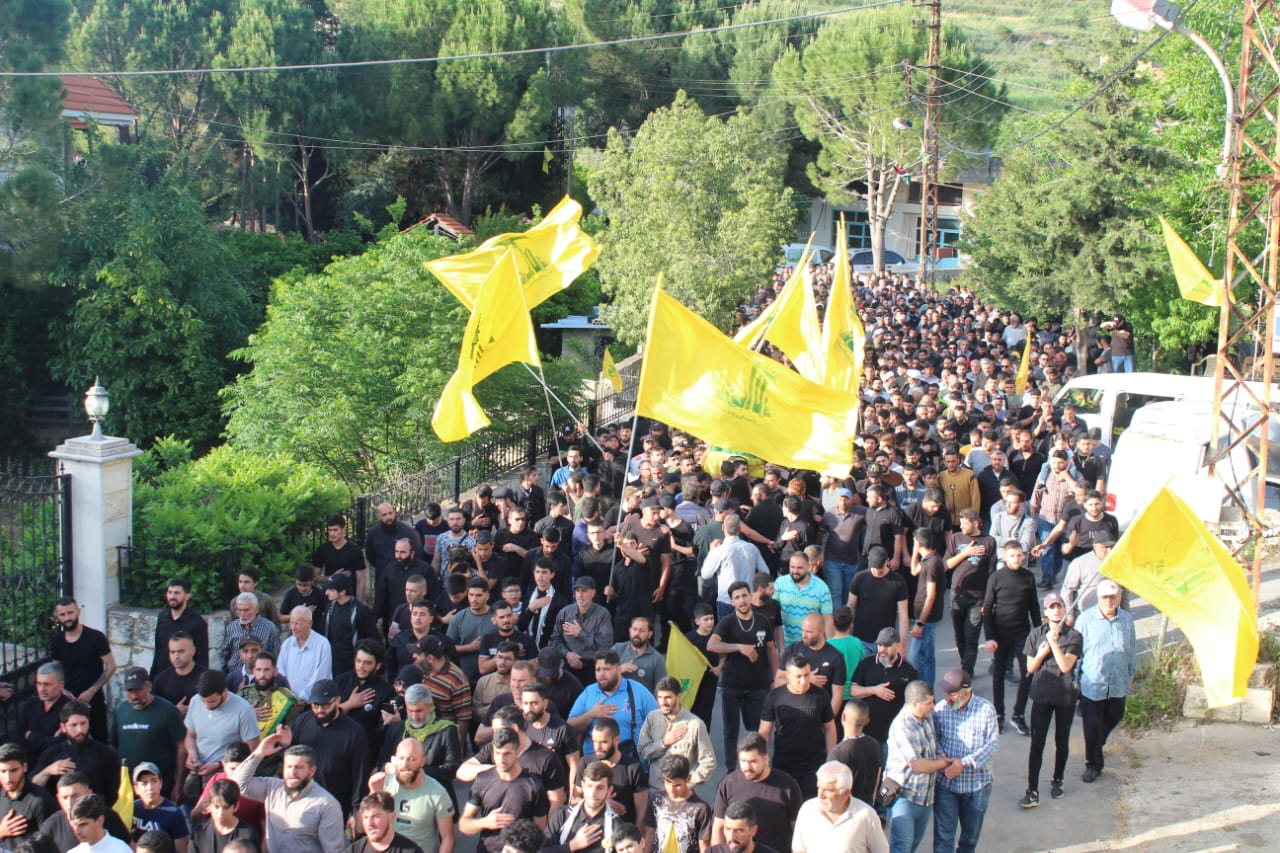 وبعد الصلاة على الجثمان الطاهر جاب النعش شوارع البلدة على وقع الهتافات الحسينية والمؤيدة للمقاومة وشارك في التشييع رئيس كتلة الوفاء للمقاومة النائب محمد رعد ، شخصيات وفعاليات ، علماء دين، عوائل الشهداء والأهالي.