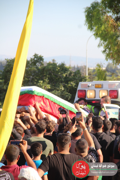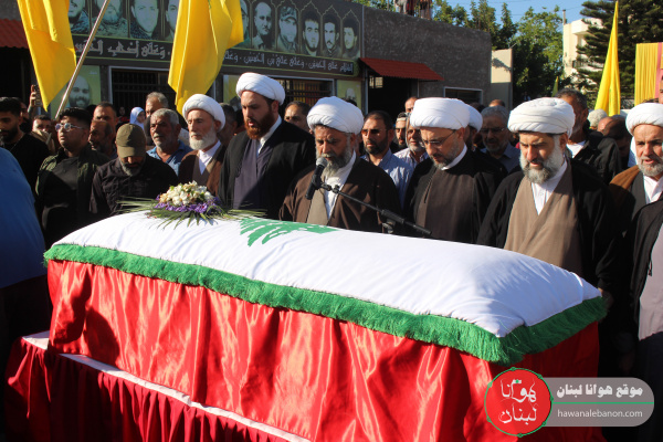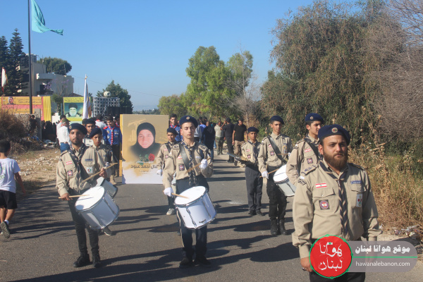 وبعد المراسم التكريمية للشهيدة عزفت الفرقة الموسيقية في كشافة الإمام المهدي (عج) لحن الشهادة، وبعدها أن أمّ الشيخ حسن دبوس الصّلاة على جثمانها الطاهر، حيث جاب النعش شوارع البلدة على وقع الهُتافات الحسينية والمؤيدة للمقاومة بمشاركة النائب حسن عزالدين، وشخصيات وفعاليات، وعلماء، وعوائل الشهداء و اهالي القرى المجاورة، مر المشيعون على مكان الاستهداف مؤكدين ثباتهم على النهج الحسيني وتأيداً للمقاومة والمضي على خطاها.
