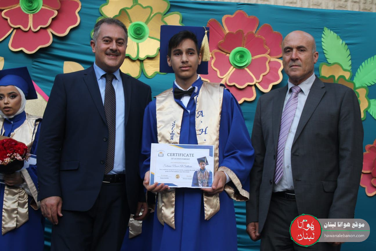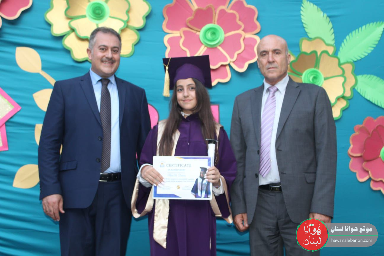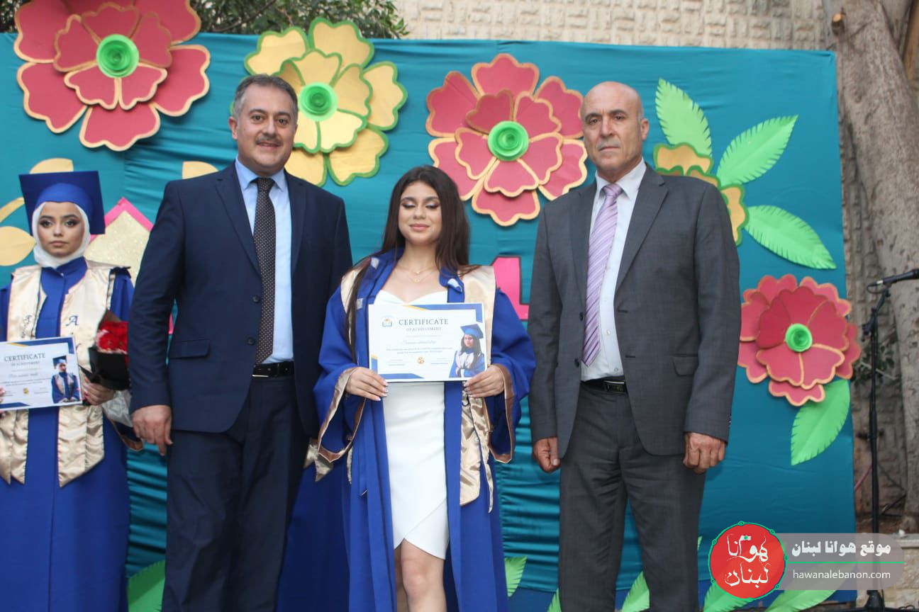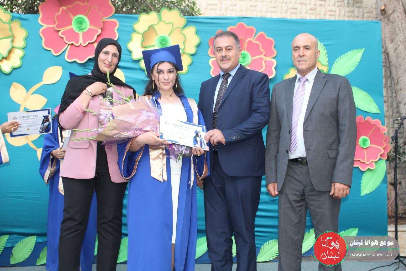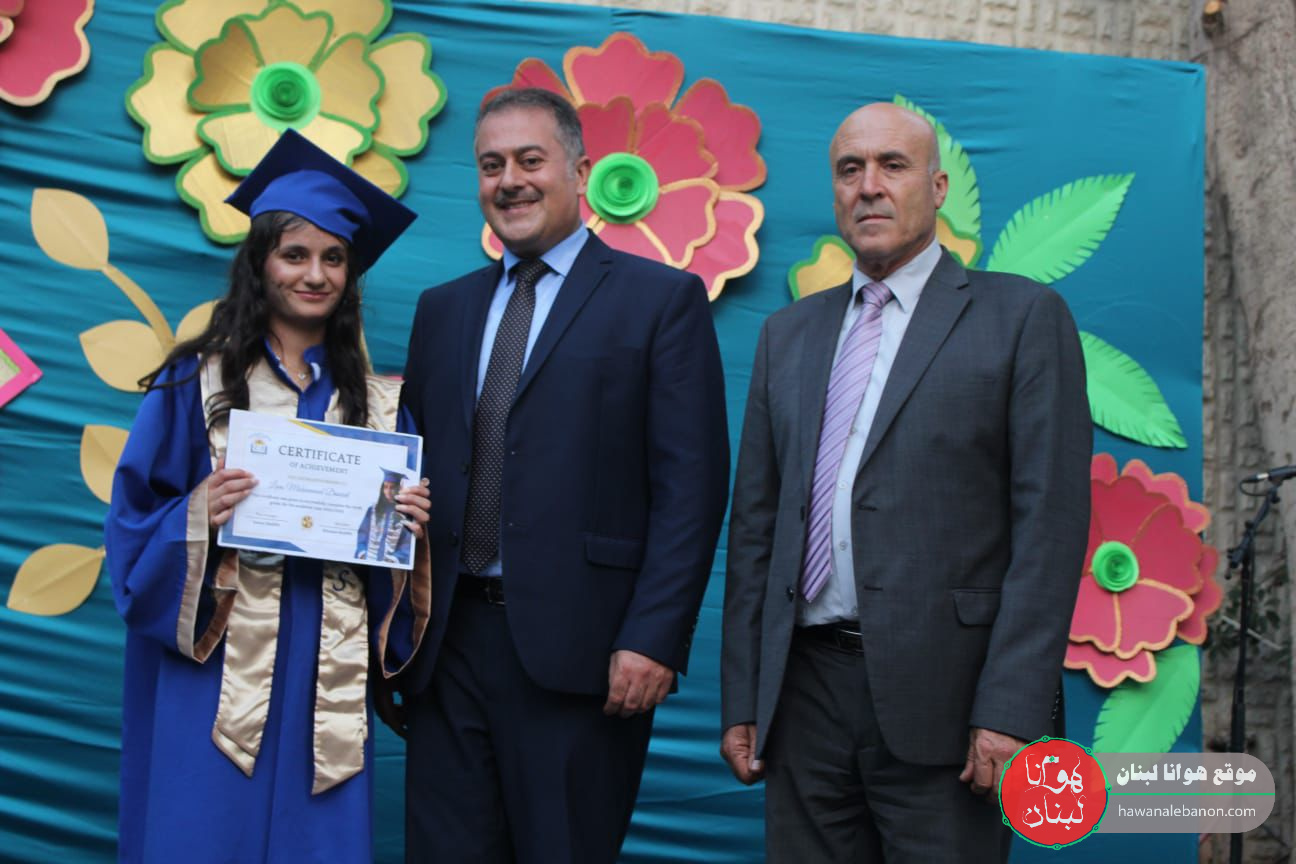 واختُتِم الحفل بتوزيع الدروع لكل من راعي الإحتفال الاستاذ احمد صالح ومدير الثانوية الاستاذ حسن خليفة والناظرة ابتسام خليفة والشهادات للطلاب الناجين.