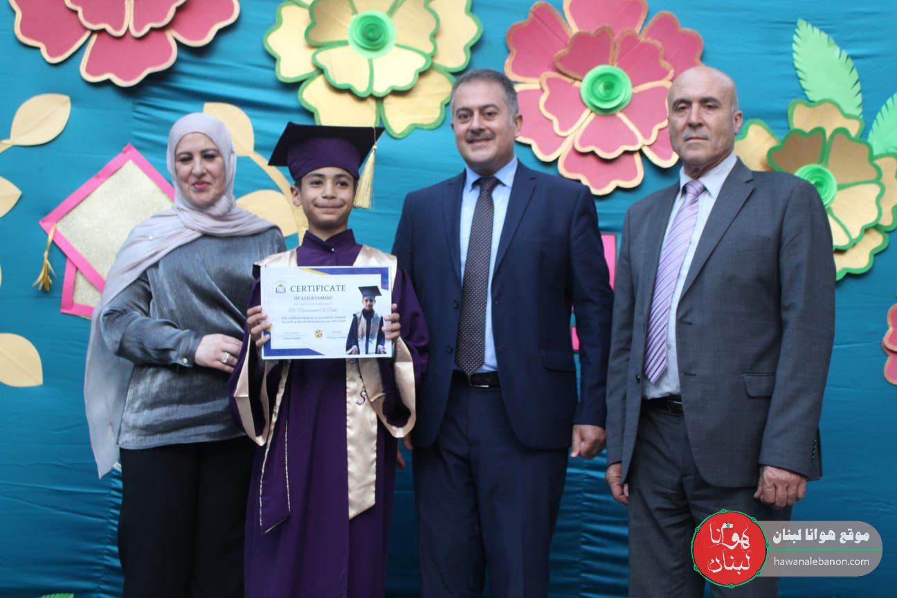 وتوجّه المدير خليفة من الطلّاب الخريجين قائلا:” بوركت عقولكم النيّرة. وإن نجاحكم لإنجاز رائع حيث اجتمع العقل والقلب واليد وشكلوا اروع النتائج..فعليكم يا أحبتي أن تدركوا معنى الحياة التي لاتستوي الا مع النجاح والنجاح ثمرة رائعة والفضل يعود للمدرسة من معلمين وإداريين ورعاية الأهل على مختلف الصعد”.