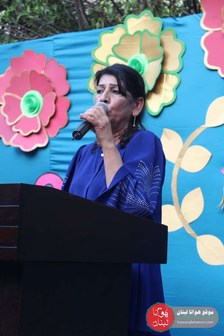 منسّقة قسم الروضات، الأستاذة حنان صالح ألقت كلمة عبّرت فيها عن سعادتها لإنتمائها لهذه المؤسسة وحيّت المدير وزملائها والطلاب وباركت لهم هذا النجاح..