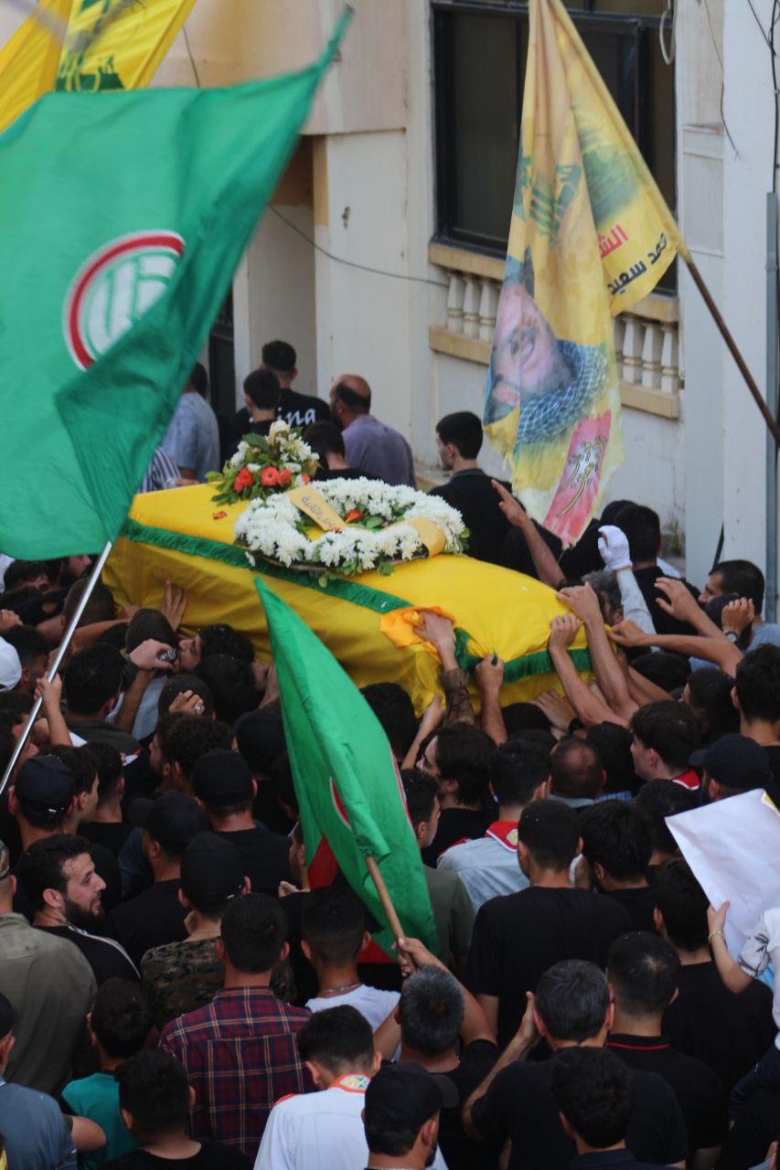 وبعد أن أمّ الشيخ علي حايك الصّلاة على الجثمان الطاهر جاب النعش شوارع البلدة على وقع الهتافات الحسينية والمؤيدة للمقاومة بمشاركة رئيس كتلة الوفاء للمقاومة النائب محمد رعد ، عضو كتلة الوفاء للمقاومة النائب حسين جشي ، رئيس المكتب السياسي لحركة أمل جميل حايك ، مسؤول منطقة جبل عامل الثانية في حزب الله علي ضعون ، معاون رئيس المجلس التنفيذي في حزب الله الشيخ عبد الكريم عبيد ، شخصيات وفعاليات ، علماء دين ، عوائل الشهداء والأهالي.