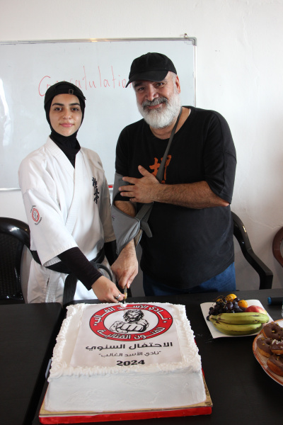أقيم الاحتفال ممثّلاً بنائب رئيس الاتّحاد اللّبناني للكيوكوشنكاي الشّيهان “إبراهيم كمال” حيث ألقى كلمةً باسم الاتّحاد وتمّ تكريمه بدرع تذكاريّ، وكذلك مدرِّبي النّادي حيث ألقى كلّ مدرِّب كلمة، وتمّ تكريمه بدرعٍ تذكاريّ (سنساي علي صفاوي، سنساي عارف حمادي، سنپاي فاطمة نابلسي)، المكرِّم رئيس نادي الأسد الغالب الأستاذ حسين نصرالله، مع حضور العديد من الشّخصيّات، والأهالي والطلّاب الأبطال حيث قدّموا استعراضات قتاليّة مثاليّة أبهرت الحضور، وانتهت بتوزيع الكيك، والتقاط الصّور التّذكاريّة.