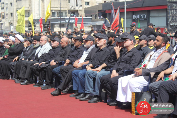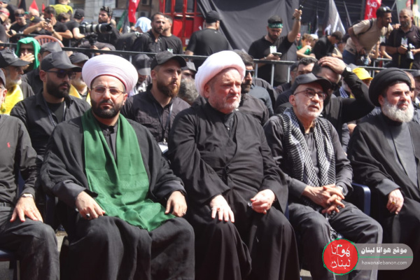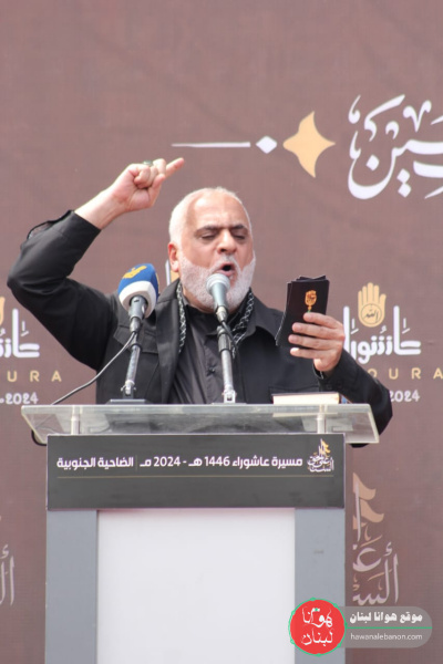 نحن هنا اليوم نضم صوتنا إلى صوت إخواننا في اليمن وإيران بالأمس، اليوم في لبنان والعراق وسوريا وكل بقية البلدان، نضم صوتنا لنؤكد بقاءنا في هذه الجبهة، لنُجدّد هنا في الضاحية الجنوبية، لنُجدّد بيعتنا للحسين عليه السلام، لحفيد الحسين صاحب الزمان عليه السلام، لنائبه بالحق الإمام الخامنئي دام ظلّه، لخط الإمام الخميني قدس سره، لخط ونهج الإمام موسى الصدر أعاده الله بخير، لقادتنا الشهداء، للسيد عباس، للشيخ راغب، للحاج عماد، للحاج قاسم، لأبو مهدي المهندس، لكل القادة الشهداء في مياديننا وساحاتنا، ونقول لهم ونقول للحسين في هذا الزمان بكل ما يُمثّله الحسين من قضية، من موقف، من نصرة للحق، من دفاع عن المظلوم، من رفض للباطل، من إباء للضيم، من رفض للذل، نقول له اليوم في ختام مسيرتنا العاشورائية، نقول له لن نتركك يا حسين، ما تركناك يا حسين، أنت تعلم وكل العالم يعلم ودليلنا شهداؤنا، أباء وأمهات وزوجات وأطفال شهدائنا، دليلنا جراح جرحانا، بيوتنا المهدمة، أهلنا الصابرون، مُقاتلون الشجعان الأبطال البواسل عند الحدود، نقول لك يا أبا عبد الله في كل ما تُمثّل اليوم، يا أبا عبد الله لو أنّا نعلم أنّا نُقتل ثم نُحرق ثم نُذرى في الهواء، ثم نُحيا ثم نُقتل ثم نُحرق ثم نُنشر في الهواء، ثم نُحيا ثم نُقتل، يُفعل بنا ذلك ألف مرة ما تركتك يا حسين.