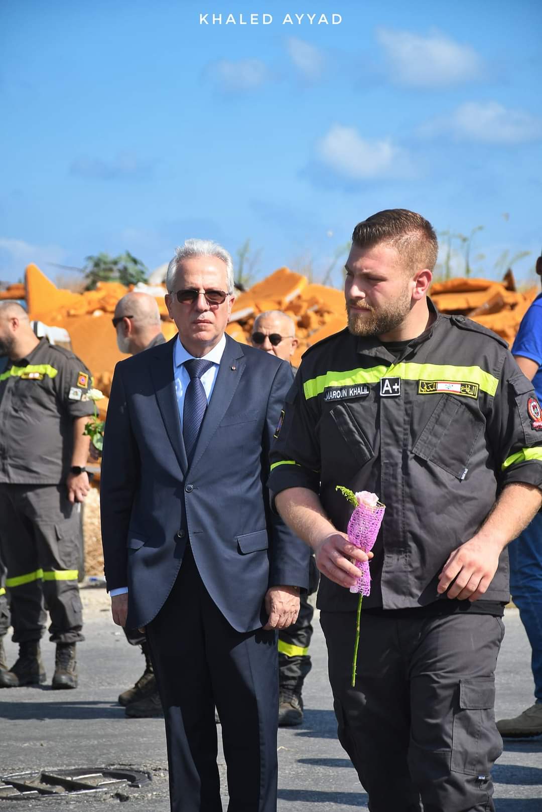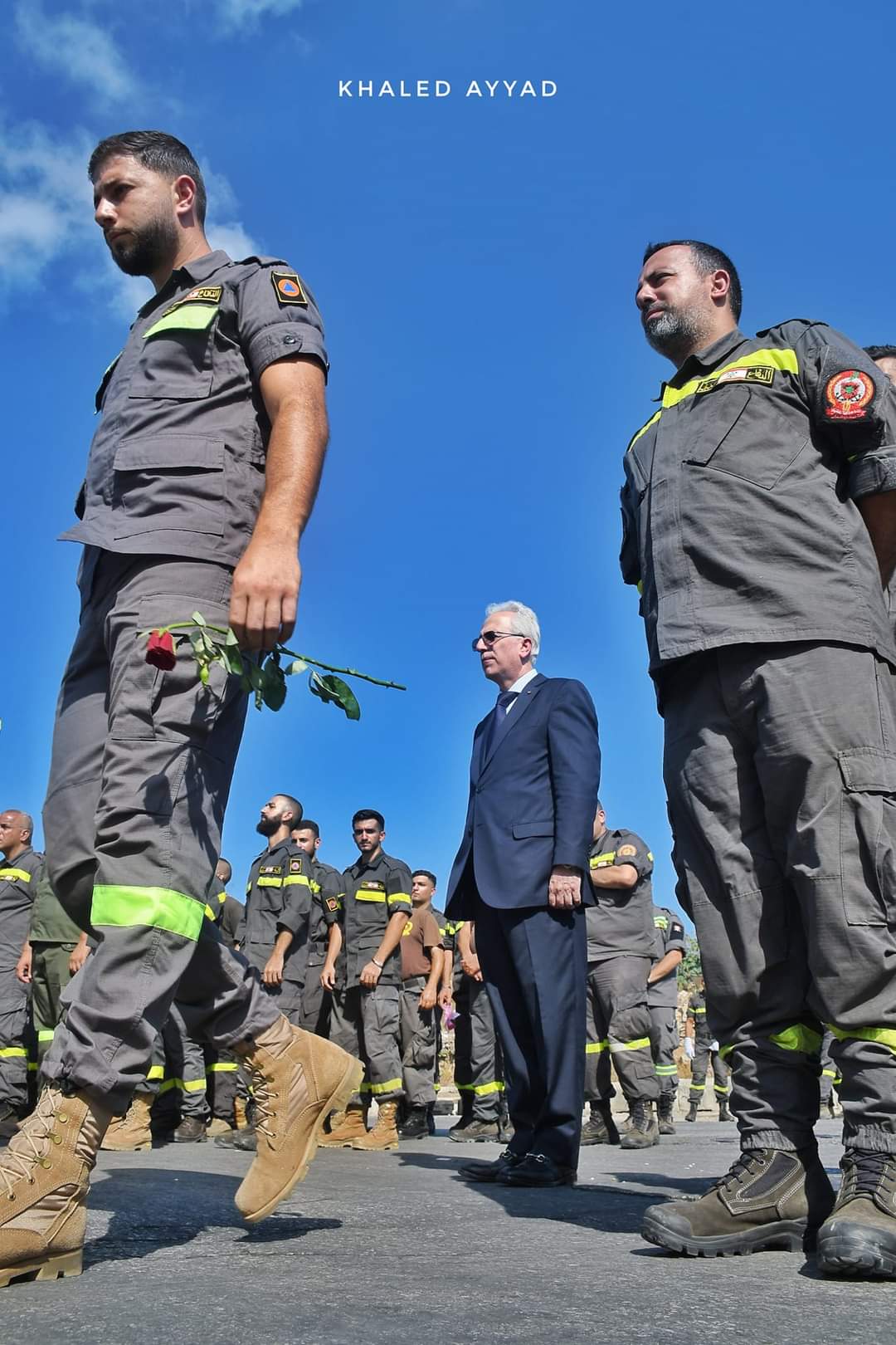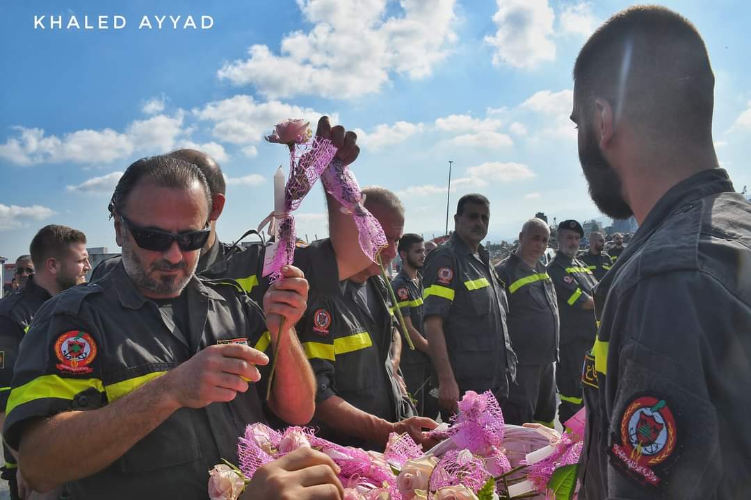 ومن ثم تقدّم عناصر الدفاع المدني تباعاً من الضريح حيث وضع كلّ منهم زهرة تعبيراً عن حزنهم على الضحايا سيّما رفاقهم في فوج إطفاء بيروت الذين استشـ.هدوا خلال تلبية نداء الواجب.