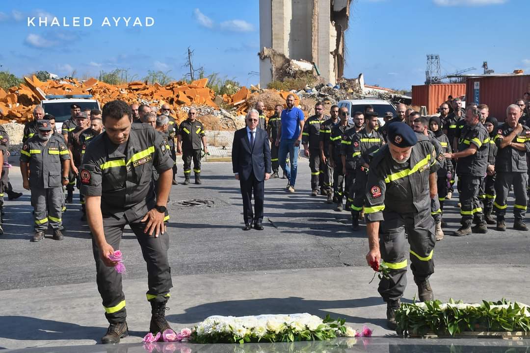 بمناسبة الذكرى الرابعة لانفجار مرفأ بيروت، وضع المدير العام للدفاع المدني العميد ريمون خطّار إكليلاً من الزهر على ضريح شهداء إنفـ.جار مرفأ بيروت الذين رووا بدمائهم أرض الوطن، تحيةً لأرواحهم وتخليداً لذكراهم، وذلك بحضور عدد من رؤساء المراكز الإقليمية والعضوية والعناصر في المديرية العامة للدفاع المدني.