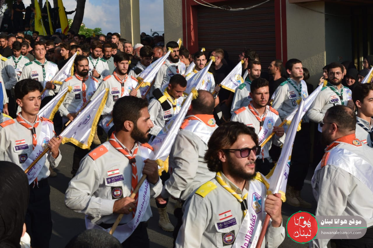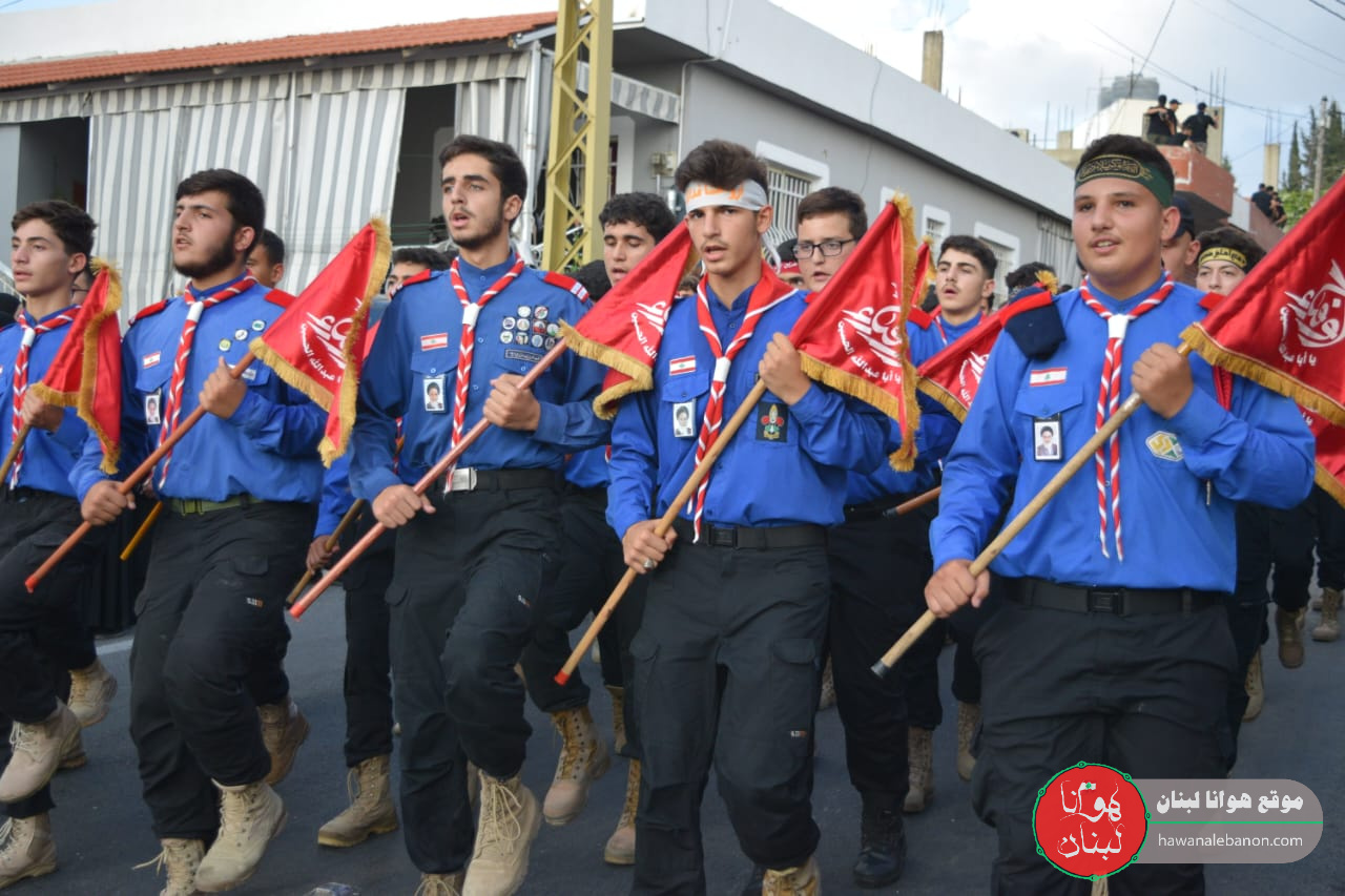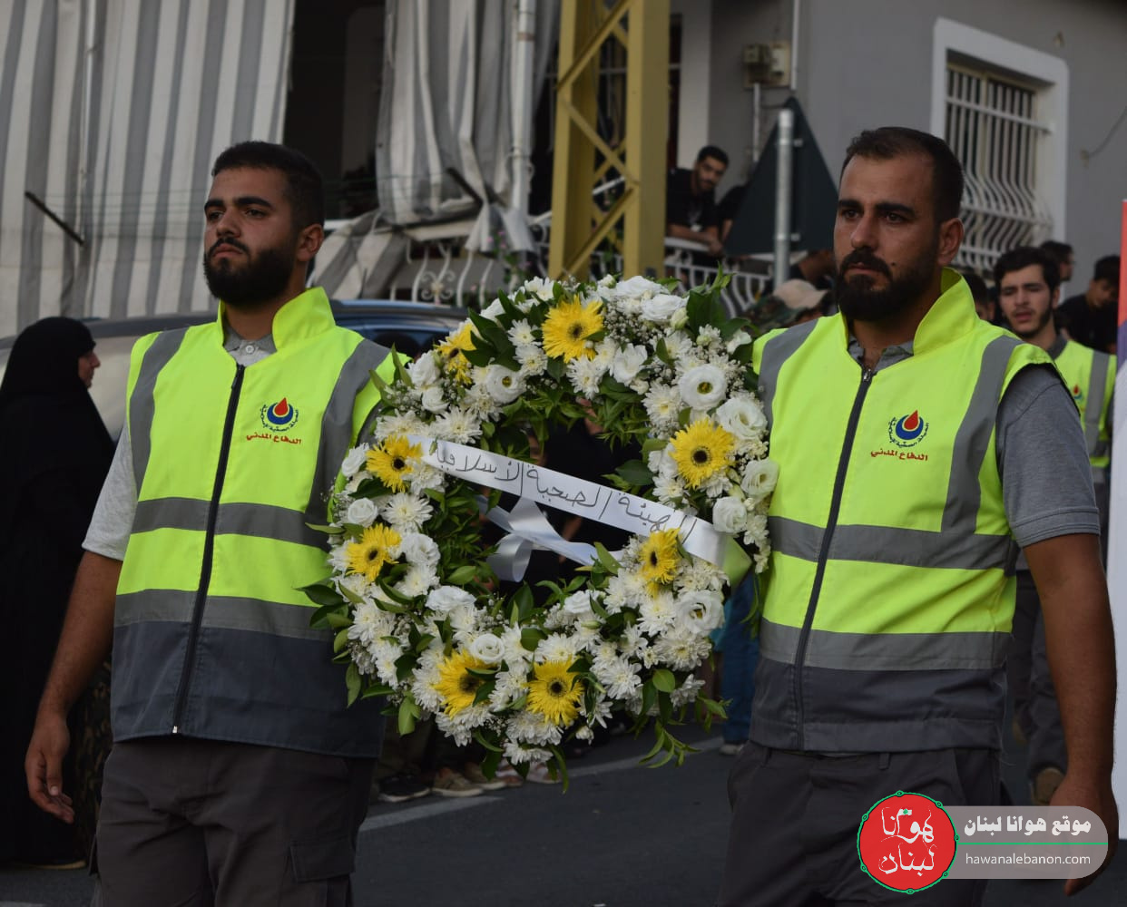وتقدّمت مسيرة التّشييع سيّارات إسعاف تابعة لمديريّة جبل عامل الأولى في الدّفاع المدنيّ – الهيئة الصّحّيّة الإسلاميّة، وفرقٌ من كشّافة الإمام المهديّ (عج) حملت صور القادة والرّايات الحسينيّة، سارت خلف سريّة تشكيلات خاصّة رفعت العلمين الّلبنانيّ والفلسطينيّ وراية حزب الله، وجابت شوارع البلدة وصولاً إلى جبّانتها.