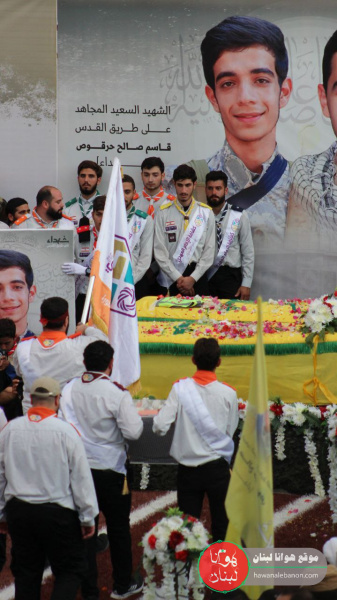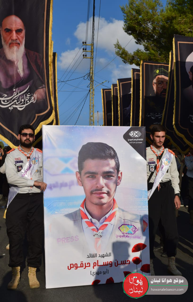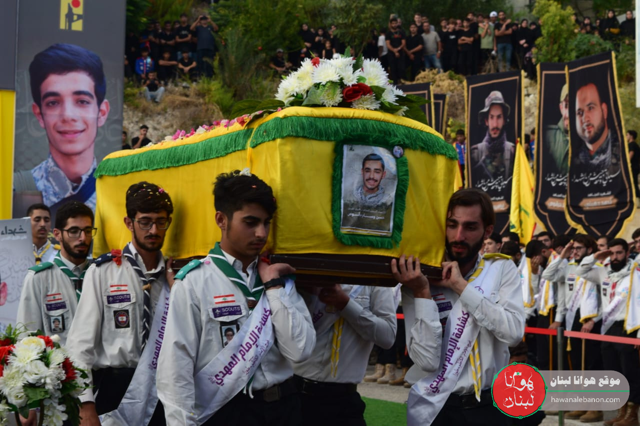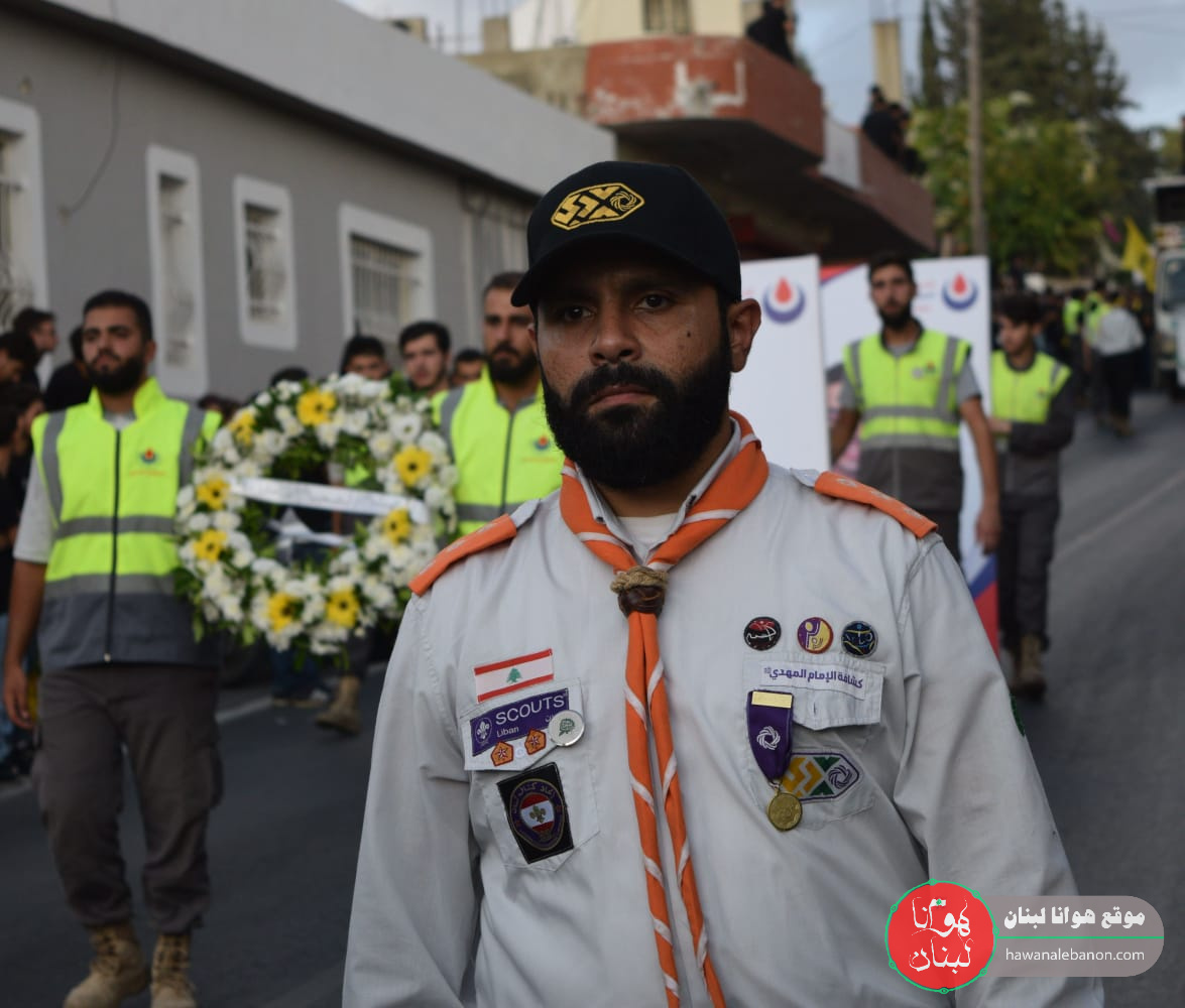 وتقدّمت مسيرة التّشييع سيّارات إسعاف تابعة لمديريّة جبل عامل الأولى في الدّفاع المدنيّ – الهيئة الصّحّيّة الإسلاميّة، وفرقٌ من كشّافة الإمام المهديّ (عج) حملت صور القادة والرّايات الحسينيّة، سارت خلف سريّة تشكيلات خاصّة رفعت العلمين الّلبنانيّ والفلسطينيّ وراية حزب الله، وجابت شوارع البلدة وصولاً إلى جبّانتها.