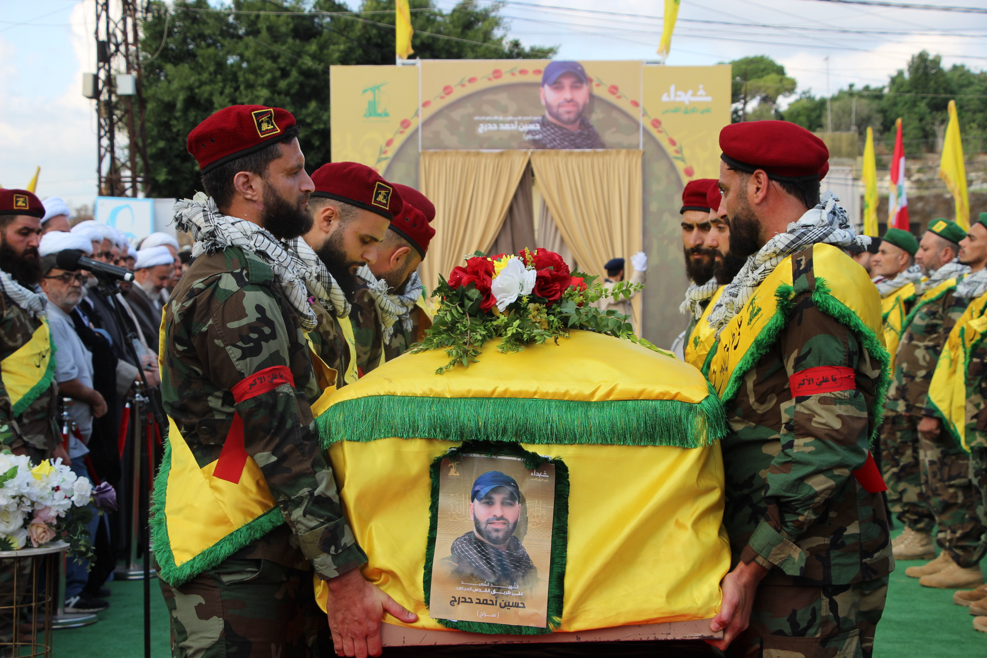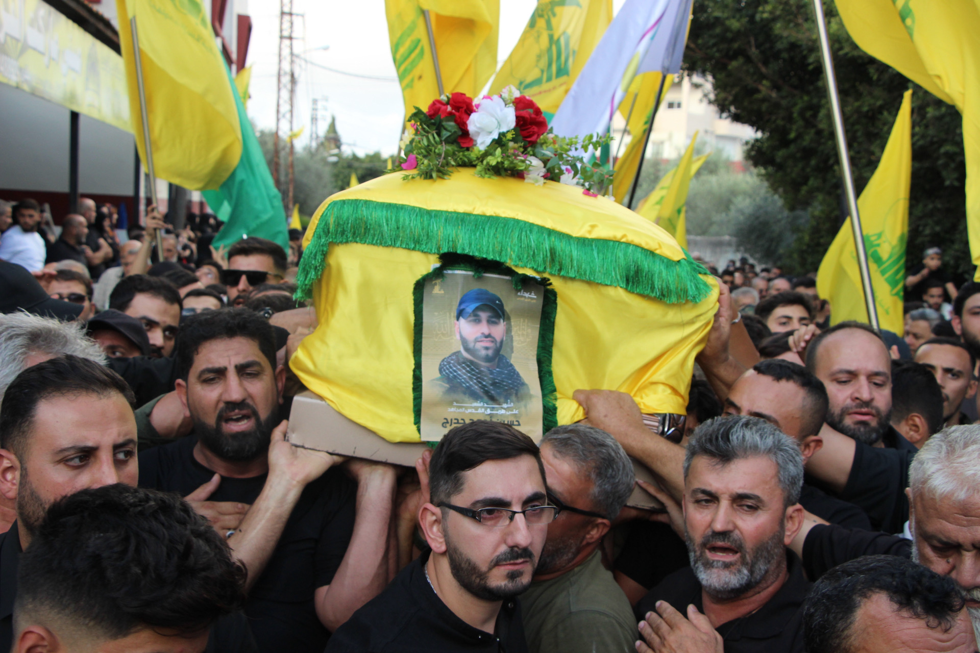 شيع حزب الله وأهالي بلدة الغسانية الجنوبية وجماهير المقاومة الشهيد على طريق القدس حسين علي حدرج”سراج” بموكب حاشد شارك فيه لفيف من العلماء و عوائل الشهداء وحشود غفير من الأهالي.