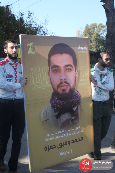 شيع حزب الله وبلدة شوكين وجماهير المقاومة الشهيدين السعيدين على طريق القدس (علي قاسم أمين، محمد وفيق حمزة) بموكب حاشد شارك فيه لفيف من العلماء و عوائل الشهداء وحشد الأهالي.