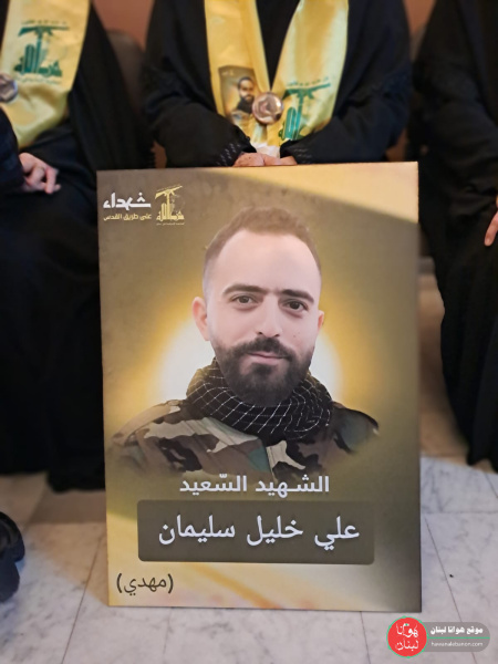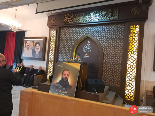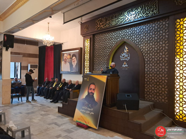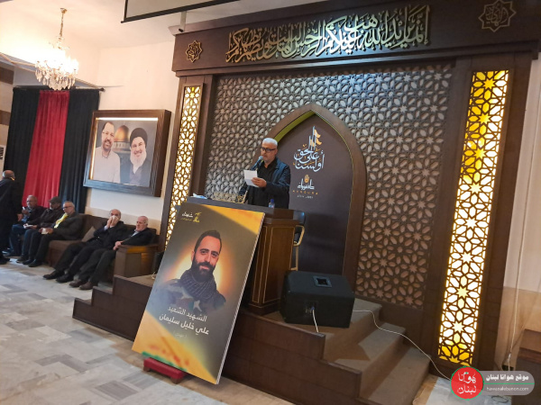 من الحفل التأبيني الذي أقيم بمناسبة مرور أسبوع على ارتقاء الشهيد علي خليل سليمان في المواجهات البطولية على الحافة الحدودية الأمامية، وفاءً لدمائه الزكية وتخليداً للنهج الحسيني المقاوم