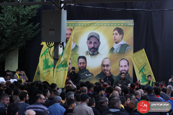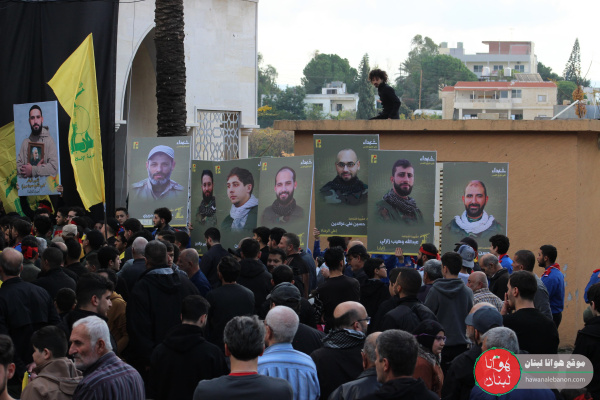 تشييع الشهداء السعداء (حسين عباس حريري، مجتبى حسين حريري، حسين علي عزالدين، مهدي عبد الأمير عزالدين، عبدالله وهيب زلزلي، عماد أحمد عزالدين، حسين هادي قاسم)، في بلدة دير قانون النهر.