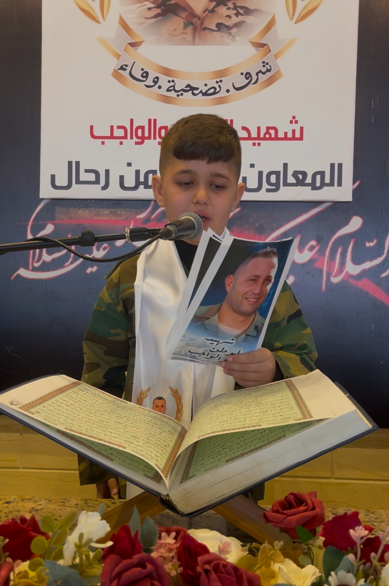 افتتح الحفل بآيات بينات من الذكر الحكيم رتلها القارئ علي حمشو، وبعدها كلمة لنجل الشهيد ، ومحلس عزاء حسيني للقارئ الشيخ ساجد سعد