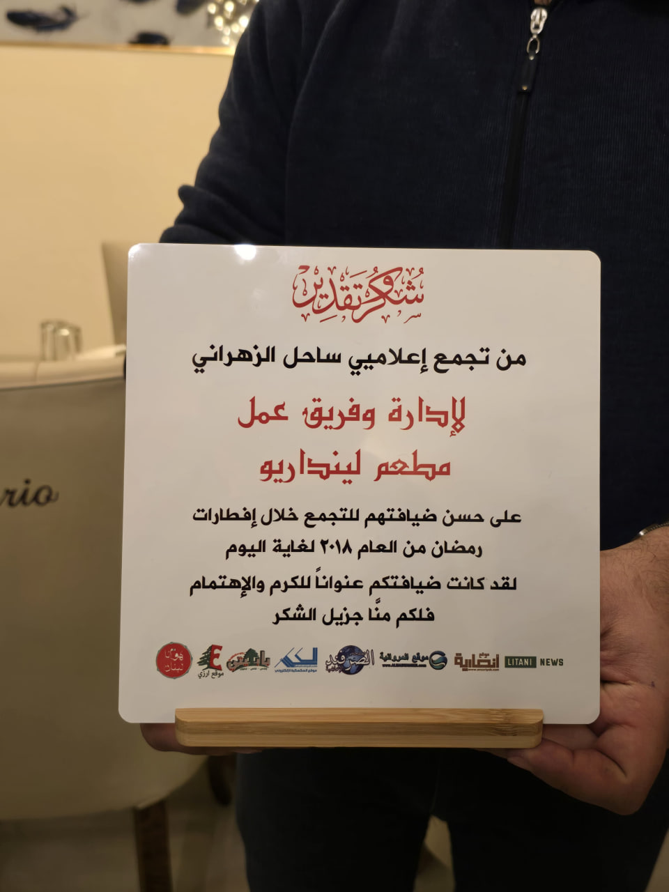 وفي ختام الحفل، قدّم إعلاميو ساحل الزهراني درعًا تقديريًا لإدارة موتيل لينداريو، عربون شكر وامتنان على استضافته الكريمة لهم خلال موائد الإفطار الرمضانية منذ عام 2018 وحتى يومنا هذا، في لفتة تعكس عمق العلاقة بين الإعلام المحلي والمؤسسات الداعمة له.