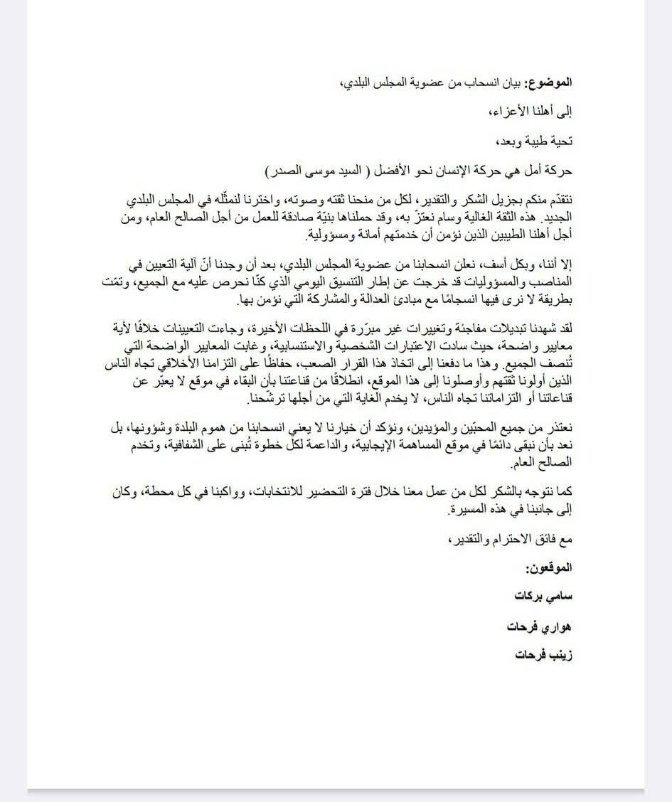قبل البداية .. إنسحاب 3 أعضاء من عضوية المجلس البلدي في أنصارية