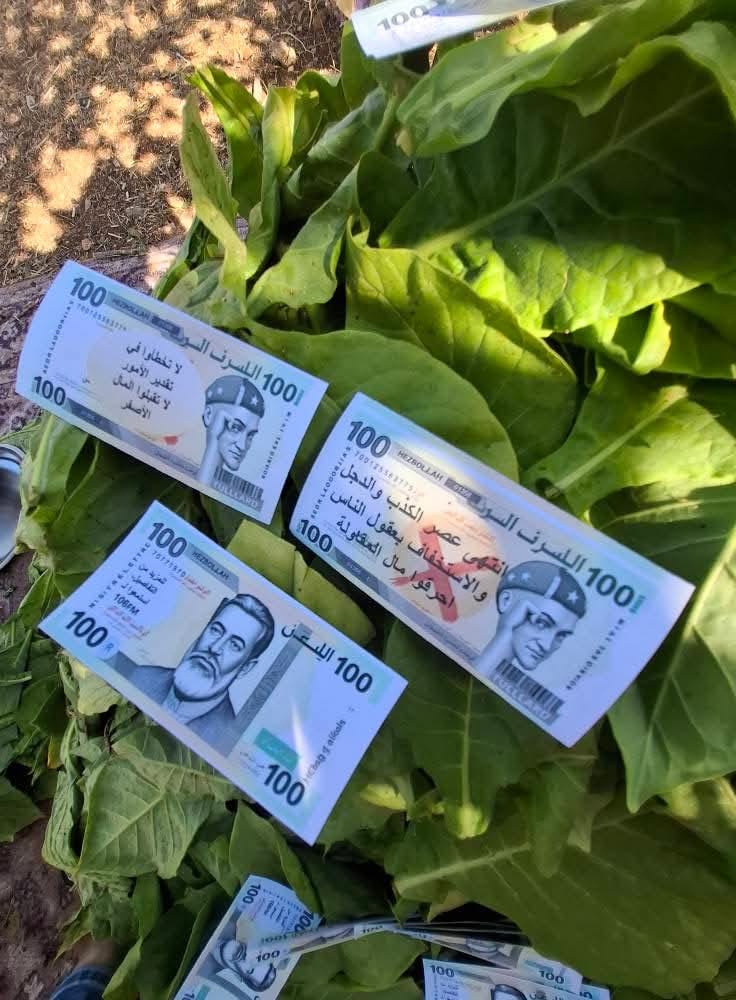 كما كتب عليها ادعاءات زائفة :” مال حزب الله حرام؛ ولن ينفعك…”، “حزب الله يتمنن عليكم بمال مزيّف، ويورطكم فلا تكونوا كالغشيم”.