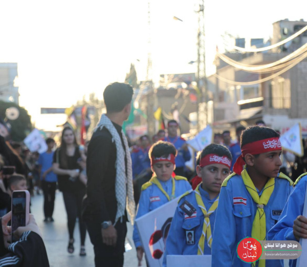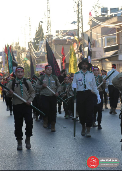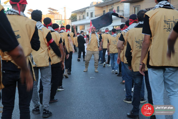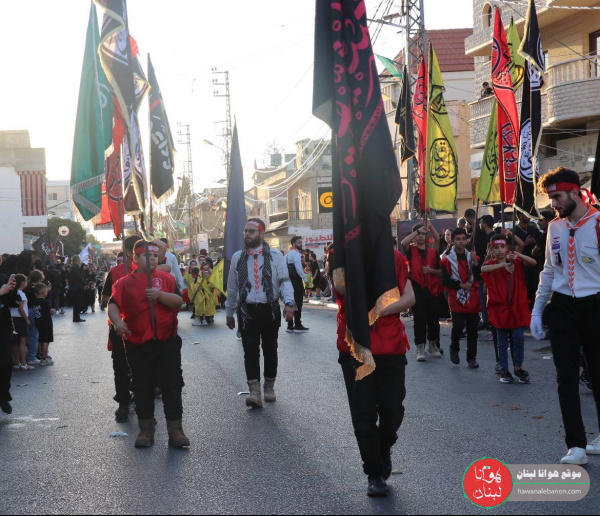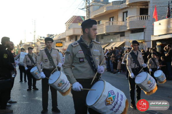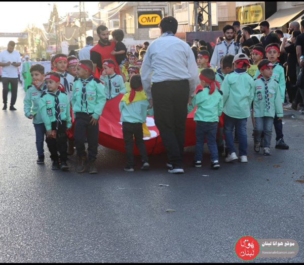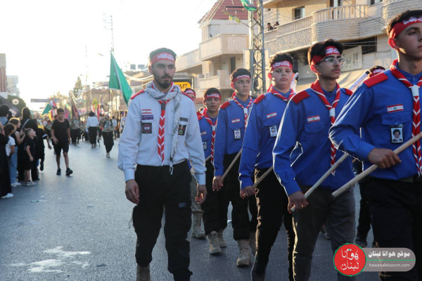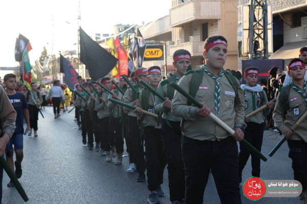 تلتها الفرق الكشفية بأزيائها الموحدة وانضباطها المميّز، ومن ثم حملة الرايات واللوحات التي جسّدت القيم الحسينية، واختُتمت بمسيرة لطمٍ حسينية حاشدة صدحت فيها الحناجر بنداءات العشق الحسيني والهتافات الرافضة للذل والظلم.