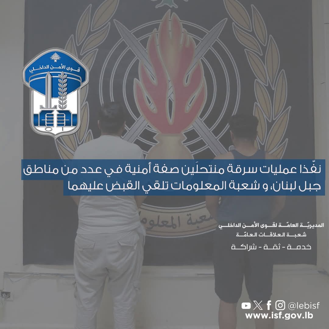 صدر عن المديريّة العامّة لقوى الأمن الدّاخلي ـ شعبة العلاقات العامّة البلاغ التّالي: