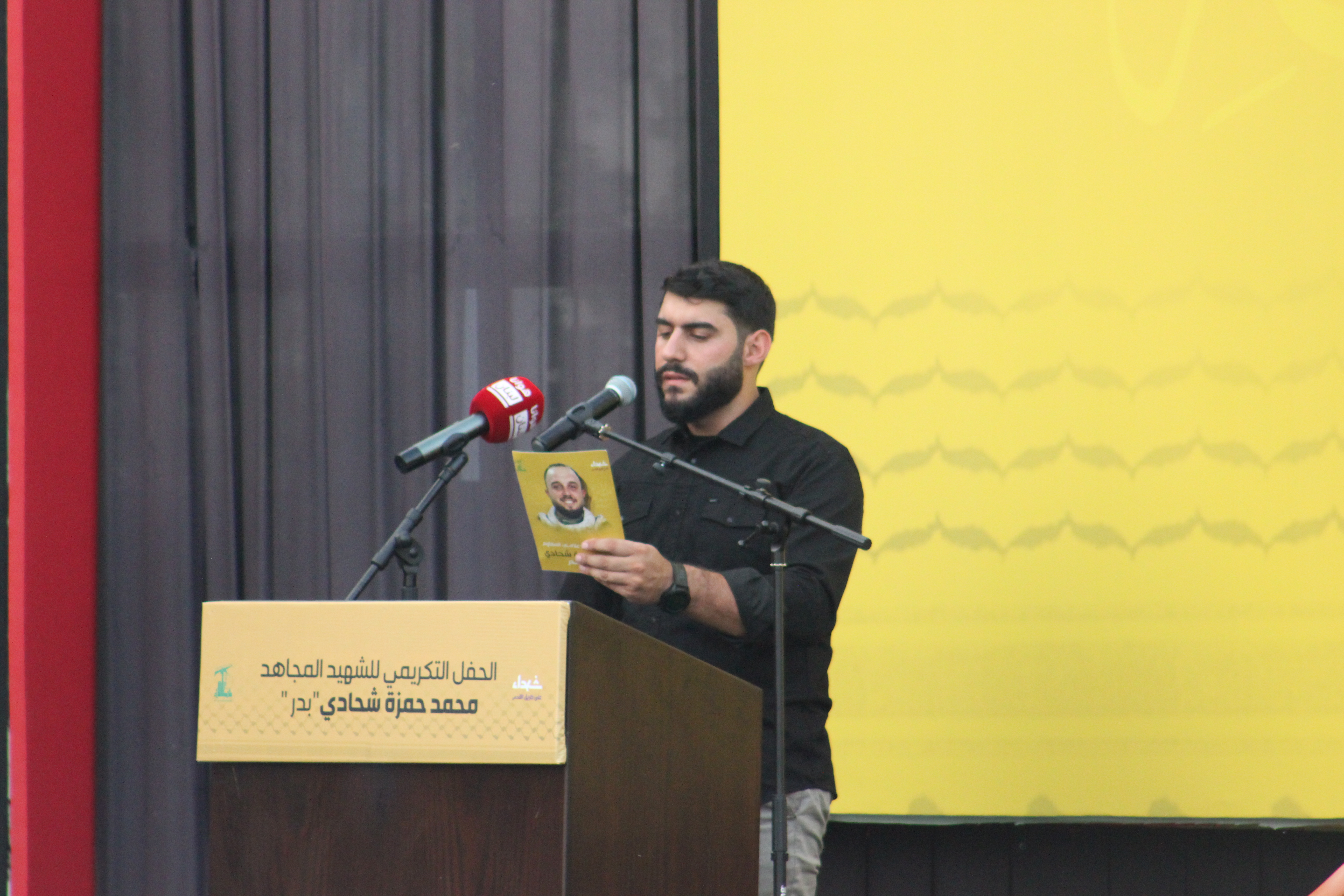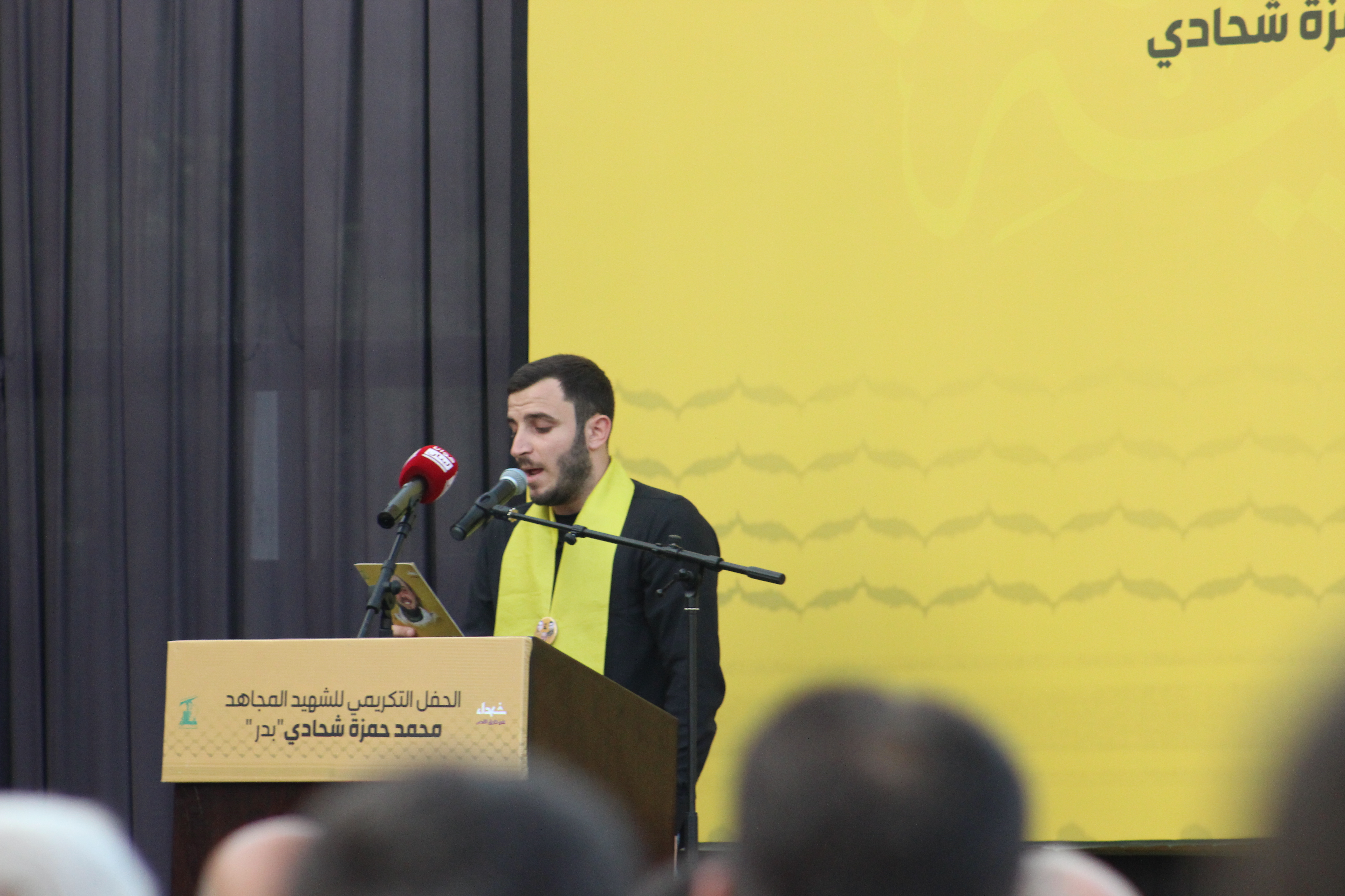 وألقى شقيق الشهيد، محمود شحادي، كلمة العائلة التي عبّرت عن الاعتزاز بتضحياته، تلتها كلمة وجدانية للشاعر كابي ناصر حملت أسمى معاني العهد والوفاء. كما ألقى الأستاذ علي صلوب كلمة موقع هوانا لبنان، مشيدًا برسالة الشهيد في ميادين الحق.