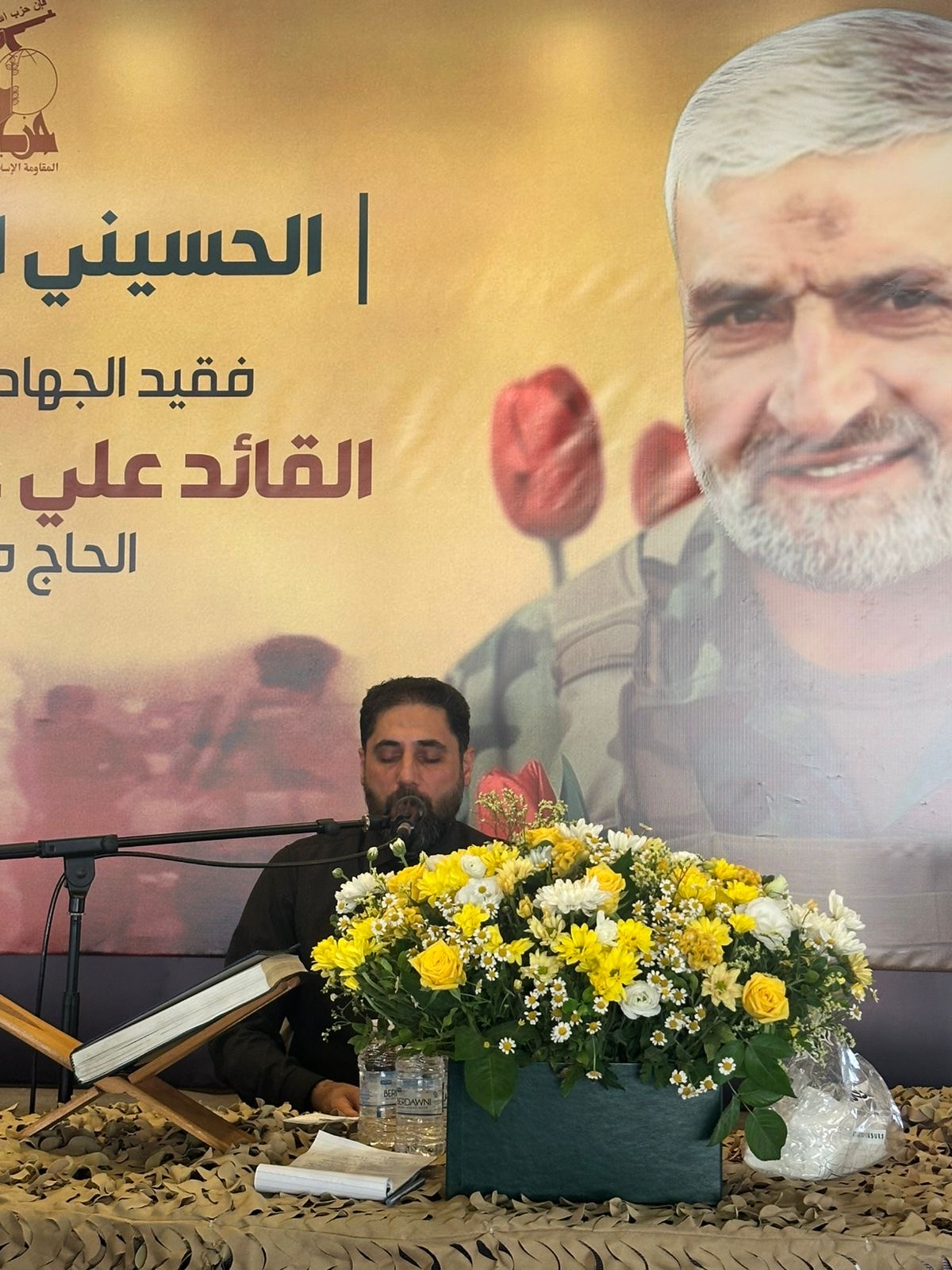 استُهلّ الحفل بتلاوة مباركة من القرآن الكريم بصوت القارئ حسين خازم، تلاها مجلس عزاء حسيني مع الرادود صادق، ثم كانت الكلمة المركزية لـ الشيخ محمد جمعة الذي استعرض السيرة الجهادية للفقيد، متوقفاً عند إنجازاته في ميادين المواجهة وصنعه للانتصارات، مؤكداً أن دماء الشهداء هي التي ترسم درب العزّة والحرية.