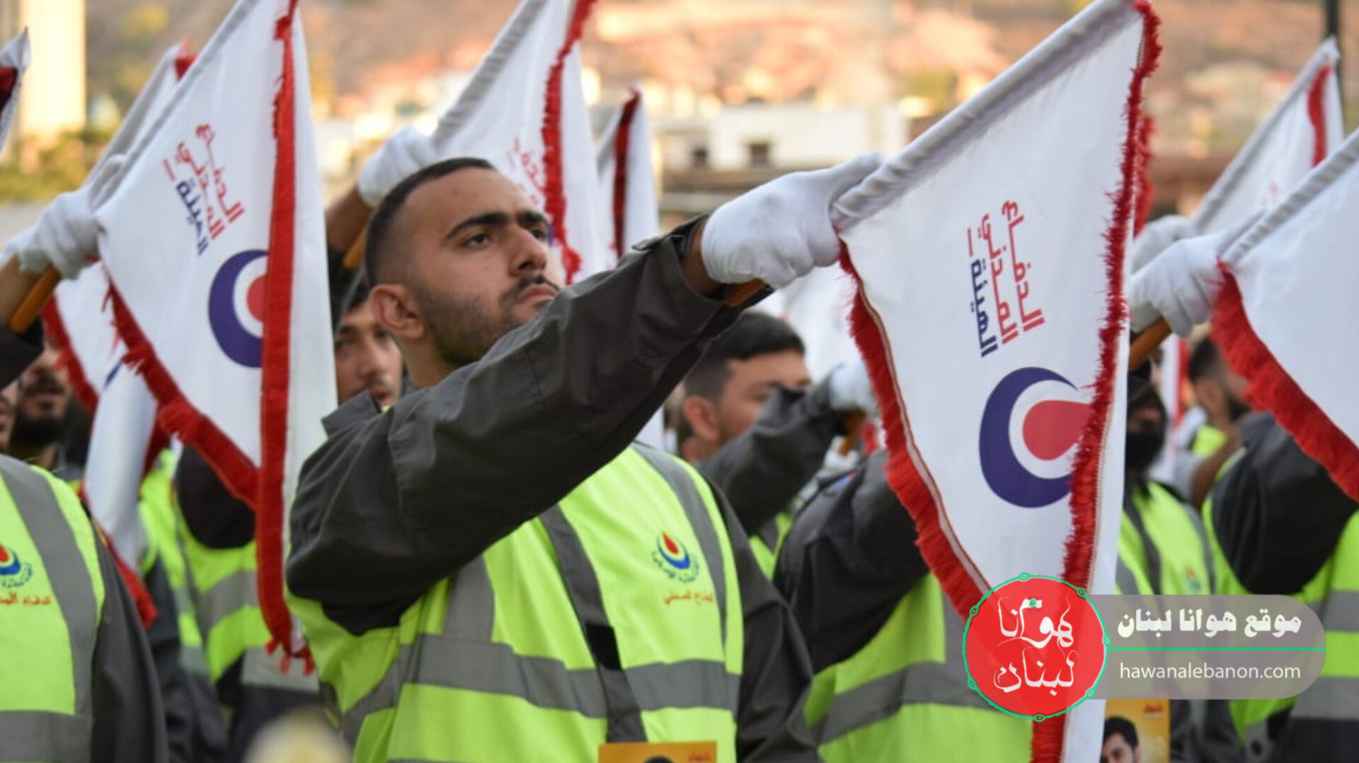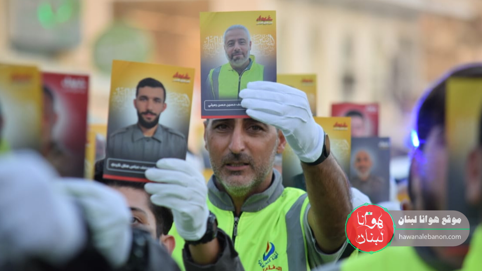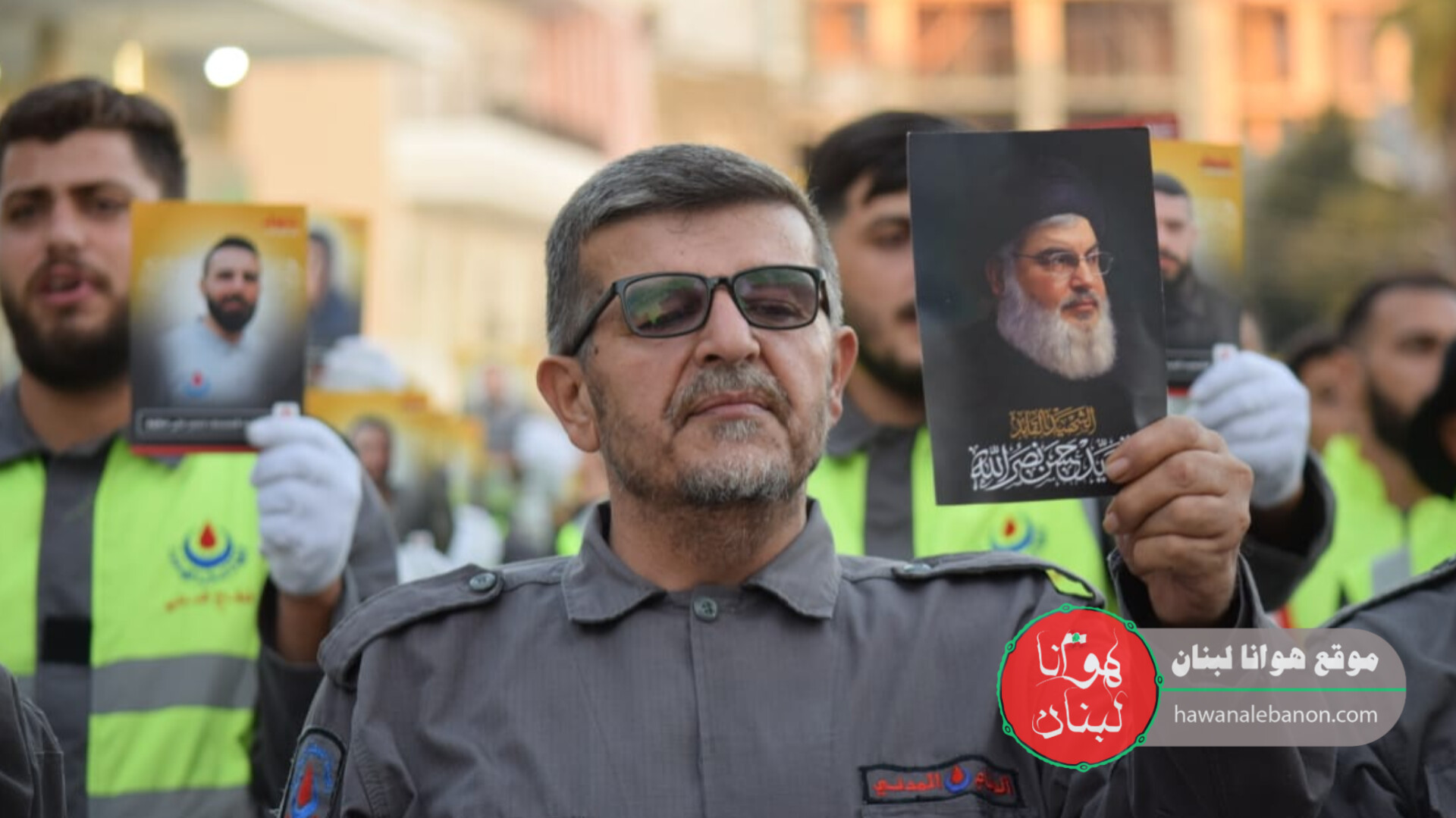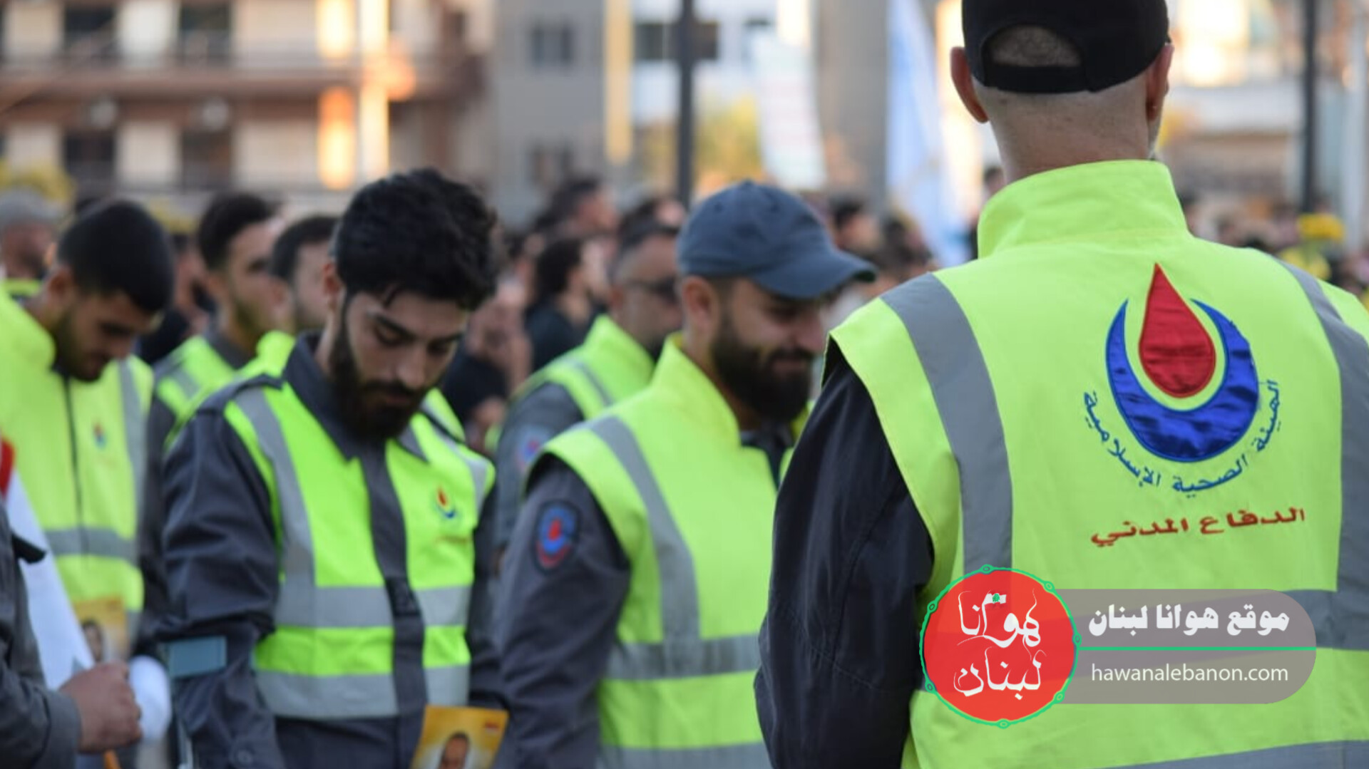 وقفة تضامنية للدفاع المدني للهيئة الصحية بمناسبة الذكرى السنوية الأولى لاستشهاد السيدين الأمينين
