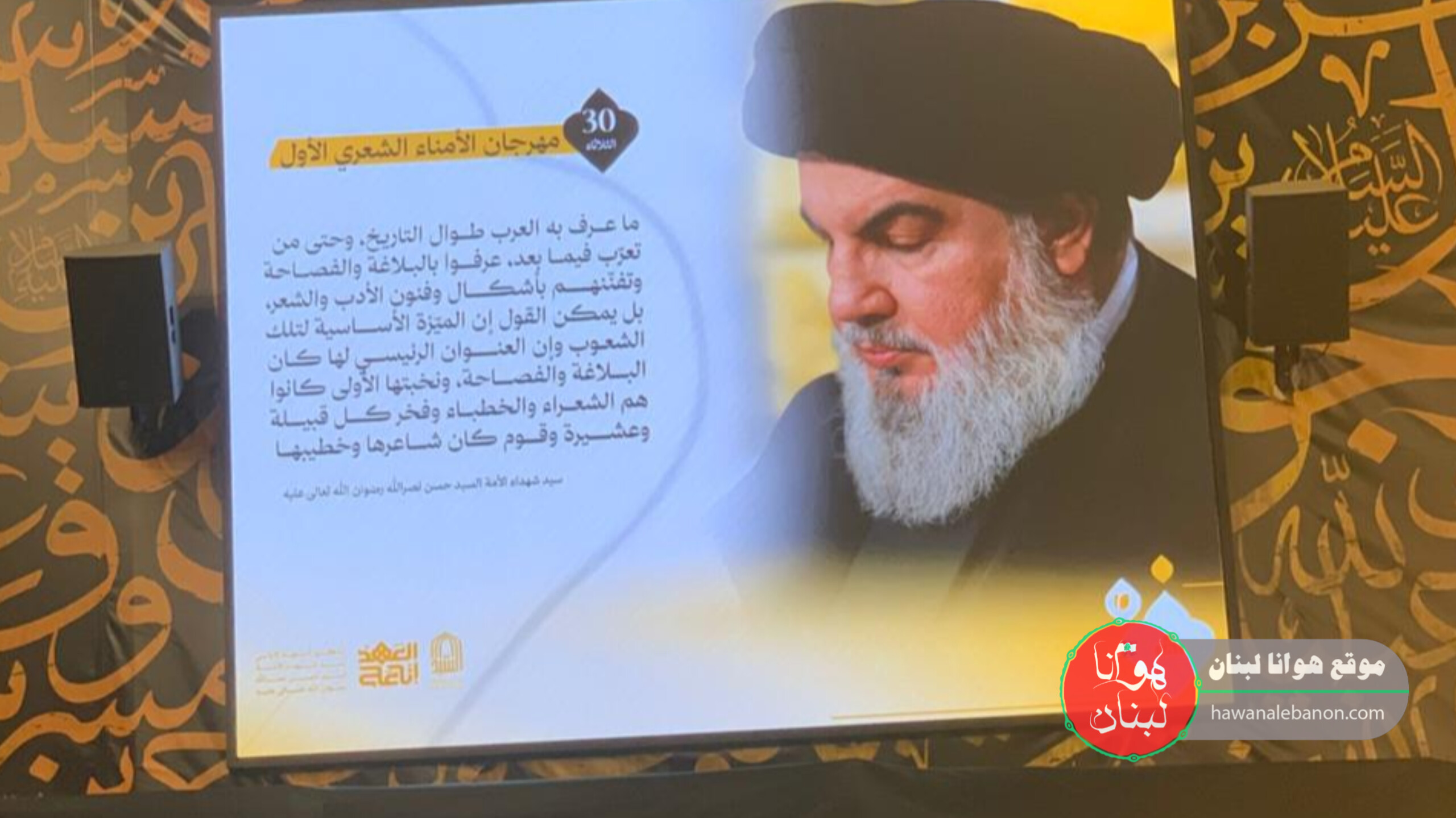 أقام حزب الله «مهرجان الأمناء الشعري الاول» ، وقد استضاف نخبة من الشعراء العرب ، وذلك بمناسبة الذكرى السنوية الأولى لاستشهاد سيد شهداء الأمة سماحة السيد حسن نصر الله ورفاقه الشهداء الأبرار ، وذلك اليوم الثلاثاء 30 ايلول 2025 في مرقد الشهيد الأسمى – طريق المطار .