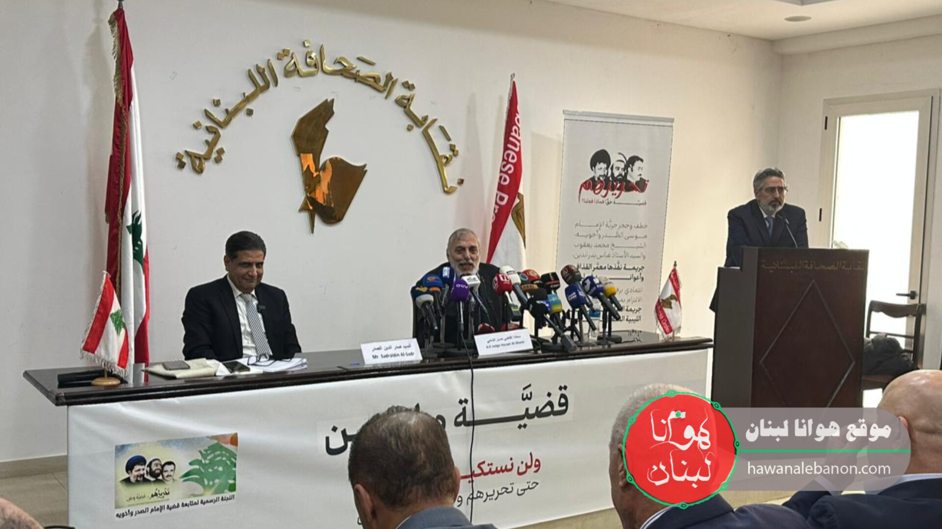 عقدت لجنة المتابعة الرسمية لقضية إخفاء الإمام السيد موسى الصدر وأخويه مؤتمرًا صحفيًا في نقابة الصحافة تحت عنوان “قضية وطن”، عرضت خلاله آخر المستجدات المرتبطة بالملف، وسط تأكيد واضح على أهمية إبقاء الرأي العام على بيّنة من الحقائق، ودور الإعلام في تثبيت الوعي الوطني ومواصلة الضغط لكشف الحقيقة.