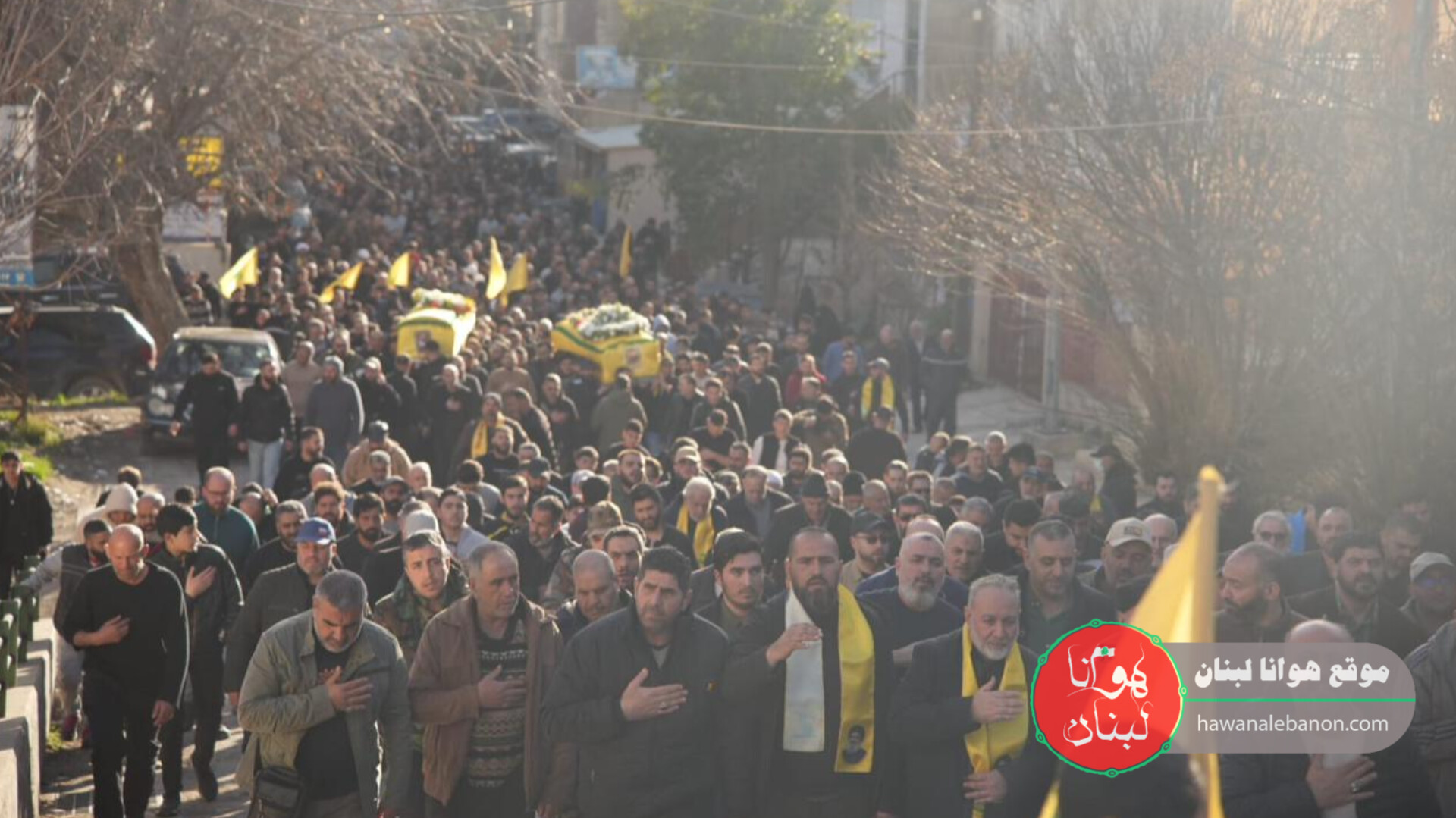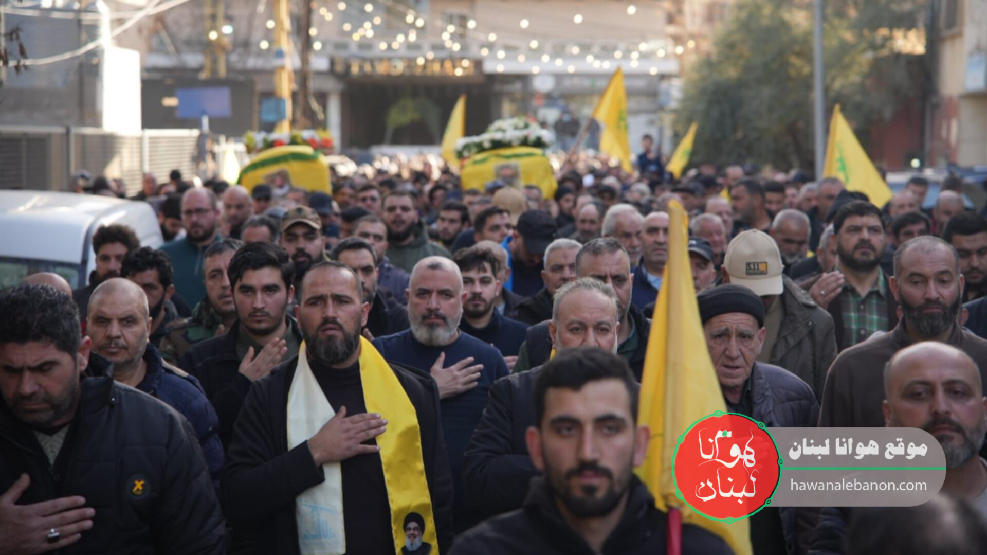 وانطلق الموكب من أمام حسينية الإمام الخميني على وقع الأناشيد ورايات العز، تتقدّمه الفرقة الموسيقية التابعة لـ كشافة الإمام المهدي، فيما احتشدت الجماهير على جانبي الطريق مودّعةً شهيدين انضمّا إلى قافلة التضحية.